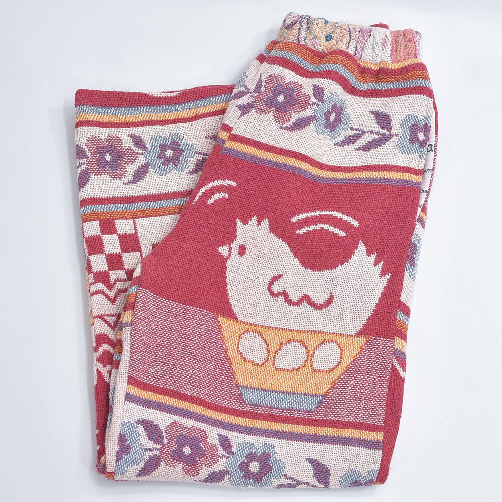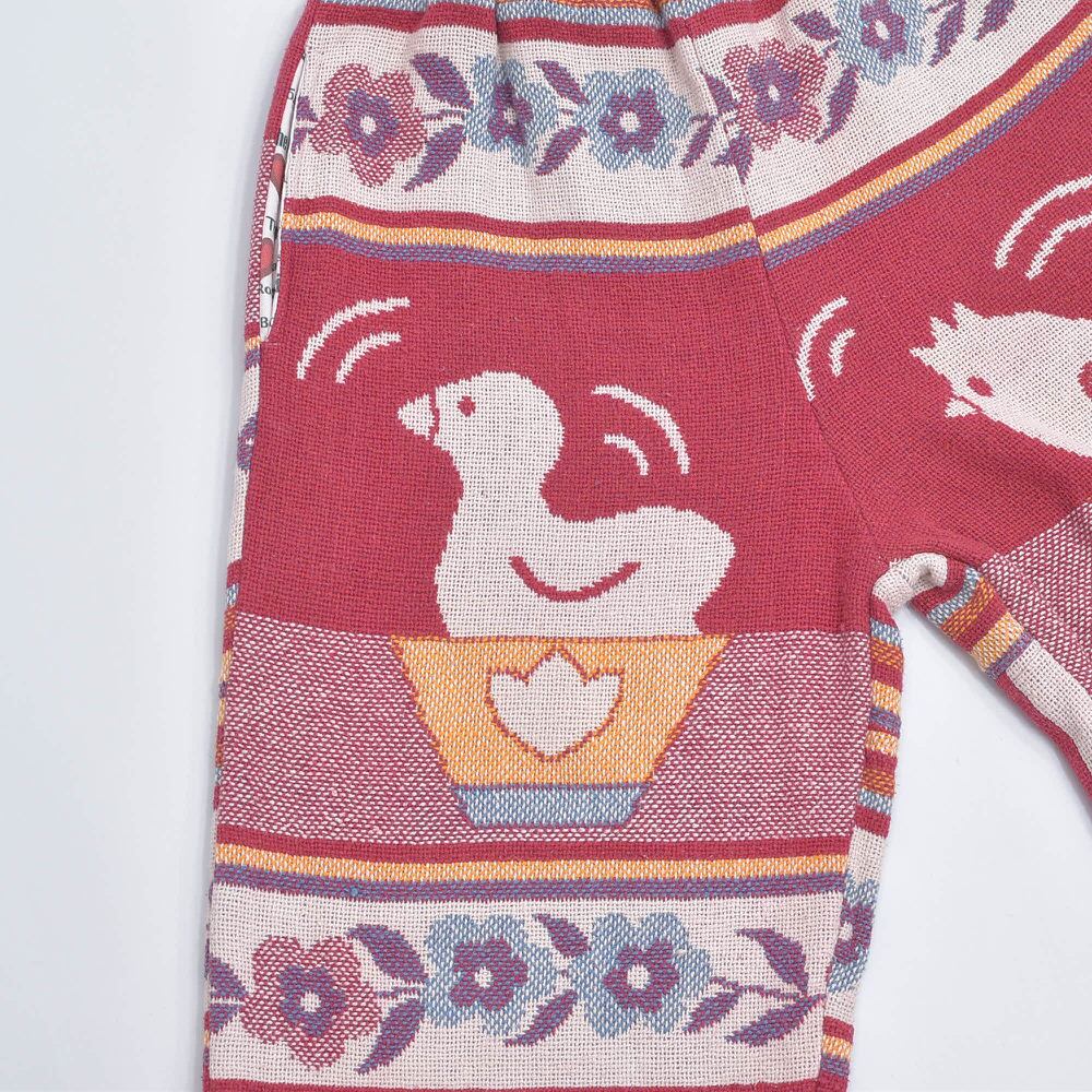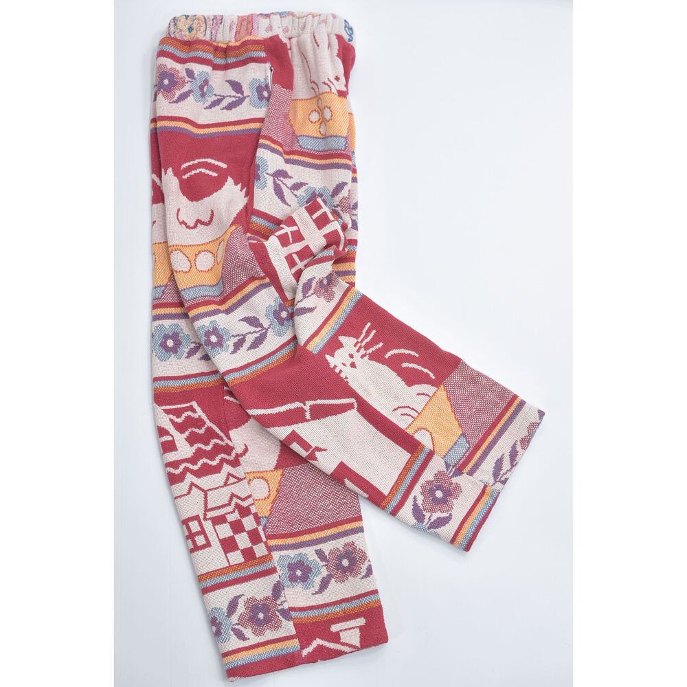 Remake リメイク ルーズシルエット ジャガード カントリー調 デザイン ラグパンツ ブランケット パッチワーク イージーパンツ 再構築 コットン ダークレッド W69~106cm