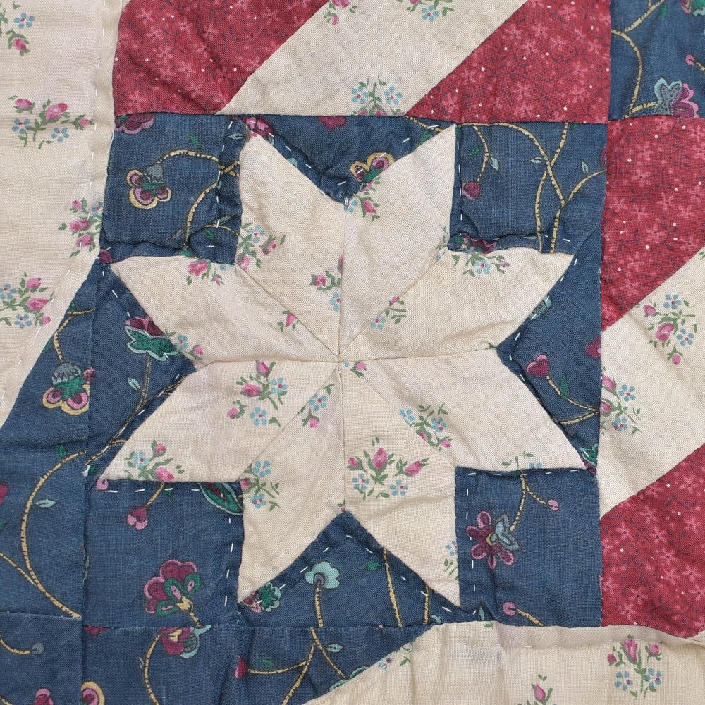 異なる時代、異なる場所で愛されたであろう生地たちをゆっくりと繋ぎ合わせて作られたパッチワークキルト