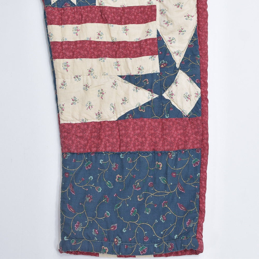 Remake リメイク ハンドメイド デザイン パッチワーク キルト スター&ストライプ デザイン ワイドシルエット イージーパンツ 再構築 ツギハギ W70~104cm