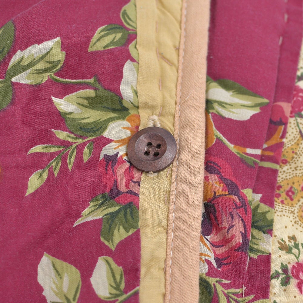 Remake ハンドメイド デザイン リメイク パッチワーク キルト ベスト アウター 再構築 ツギハギ 中綿入り ワインレッド ベージュ 花柄 レディースXL相当