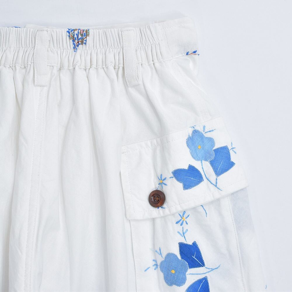 Remakeリメイク 再構築 パッチワーク&フラワー刺繍 デザイン ワイドシルエット カーゴパンツ コットン バギー ホワイト 古着 裏地付き W66〜98cm