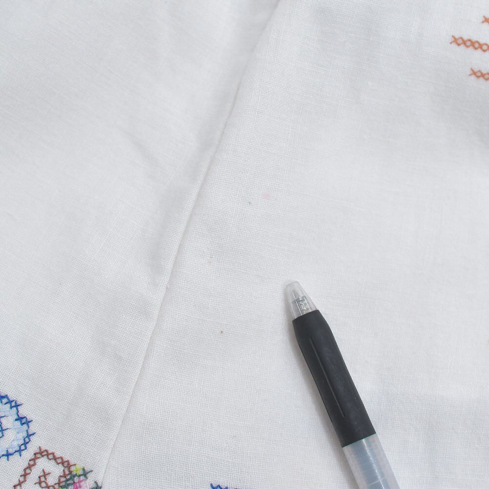 そして、前、後ろ、それぞれ違う刺繍クロスを繋ぎ合わせ、左右が対象になる様にパターンを引き、バランスが崩れない様に組み立てる丁寧な作り