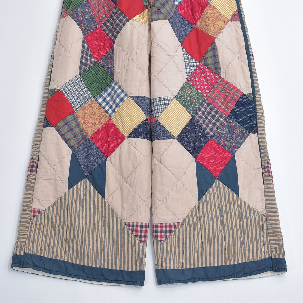 Remake リメイク ハンドメイド デザイン パッチワーク キルト ワイドシルエット バギーパンツ イージーパンツ 再構築 ツギハギ W70~110cm