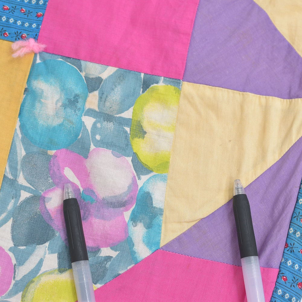 Remake リメイク ハンドメイド デザイン パッチワーク キルト ワイドシルエット イージーパンツ 再構築 ツギハギ マルチカラー W70~100cm