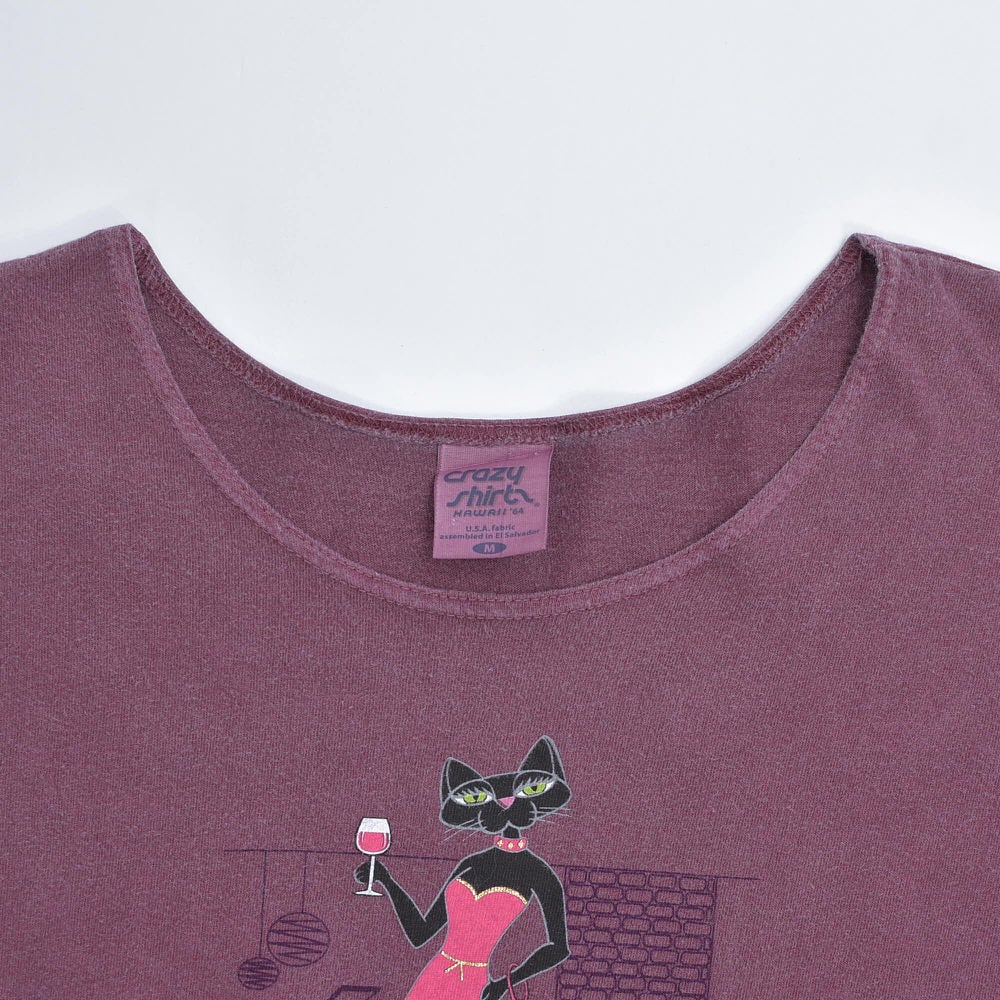 90s~ Crazy Shirts クレイジーシャツ ワイン染め 猫 アート Tシャツ USAファブリック クリバンキャット ワインレッド ヴィンテージ ビンテージ アメリカ古着 メンズ Mサイズ