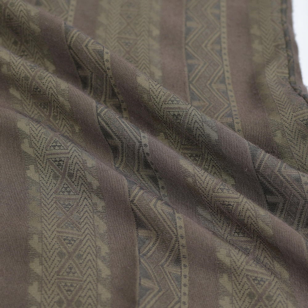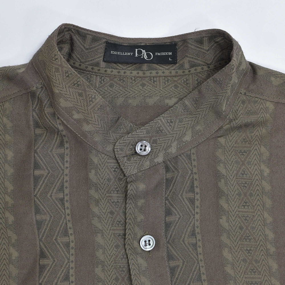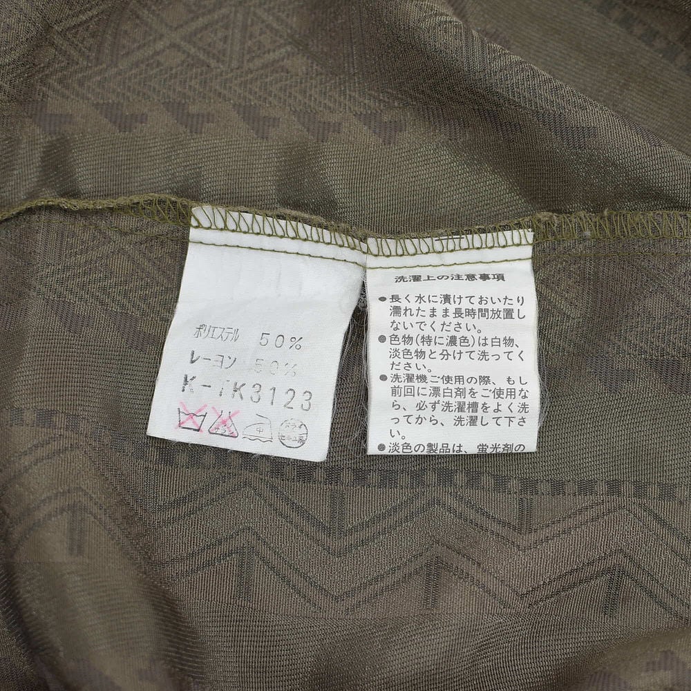 90s~ PAO スタンドカラー エスニック ストライプ 総柄 バンドカラーシャツ 長袖 デザインシャツ アート ブラウン ヴィンテージ ビンテージ 古着 メンズLサイズ