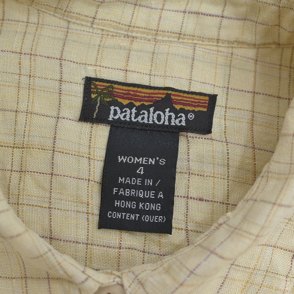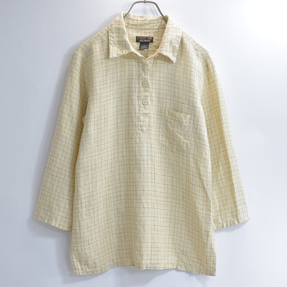 00s pataloha パタロハ 53045S02 ヘンプ プルオーバー シャツ 7分袖 チェック柄 麻 総柄シャツ クリーム patagonia パタゴニア ヴィンテージ ビンテージ アメリカ古着 レディース S〜M相当