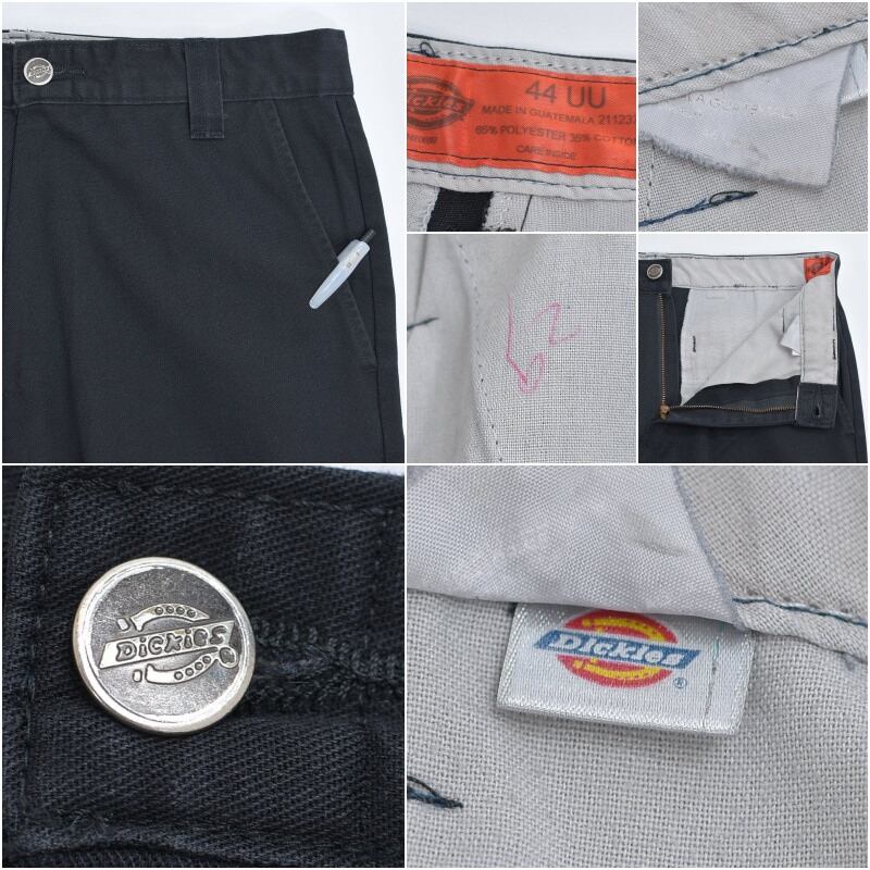 リサイズ Dickies ディッキーズ TCツイル ワイドストレート カーゴ ワークパンツ バギーパンツ ブラック ヴィンテージ ビンテージ 古着 メンズW29インチ相当
