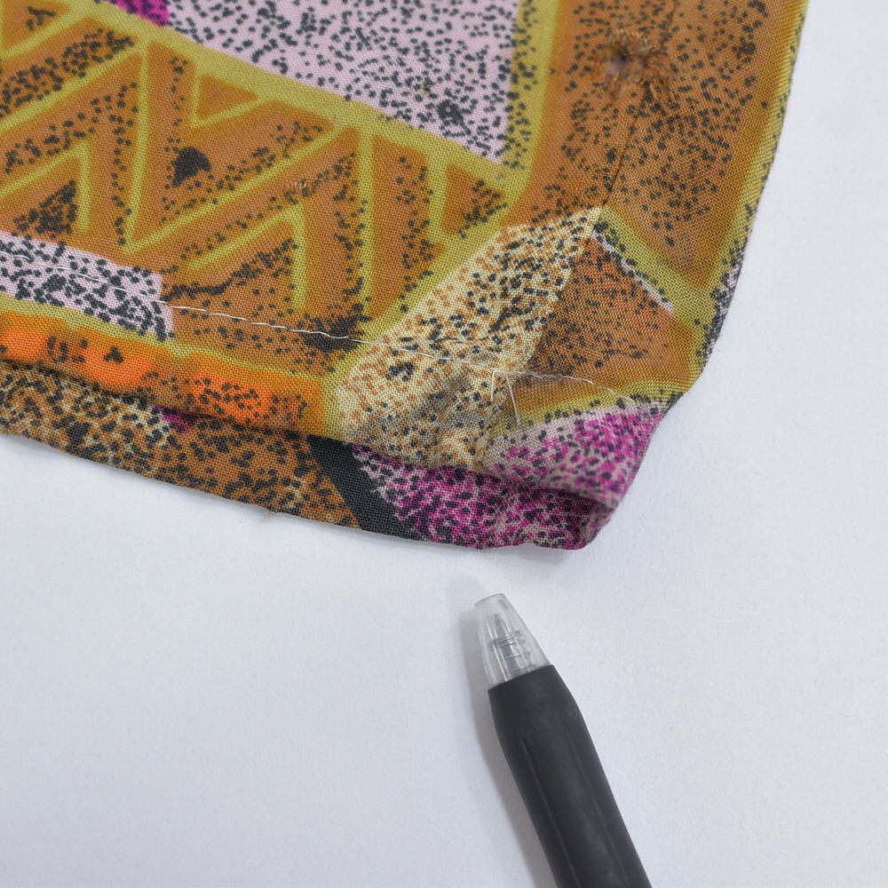 裾丈は腰骨あたりで穿いて踵が完全に隠れる程度の丈感です
