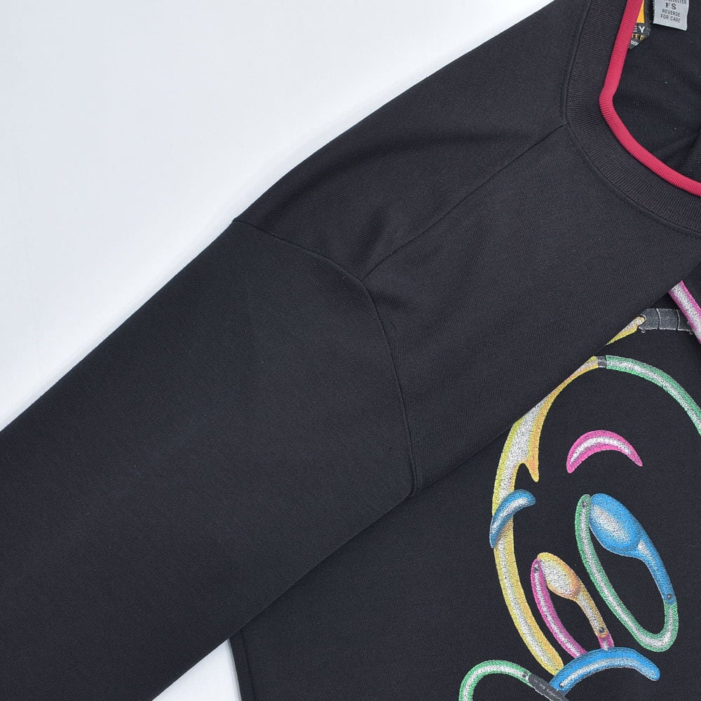 90s MICKEY UNLIMITED ミッキーアンリミテッド Disney ネオン プリント レイヤードネック ロングスリーブ Tシャツ ブラック ヴィンテージ ビンテージ USA アメリカ古着 レディースL相当
