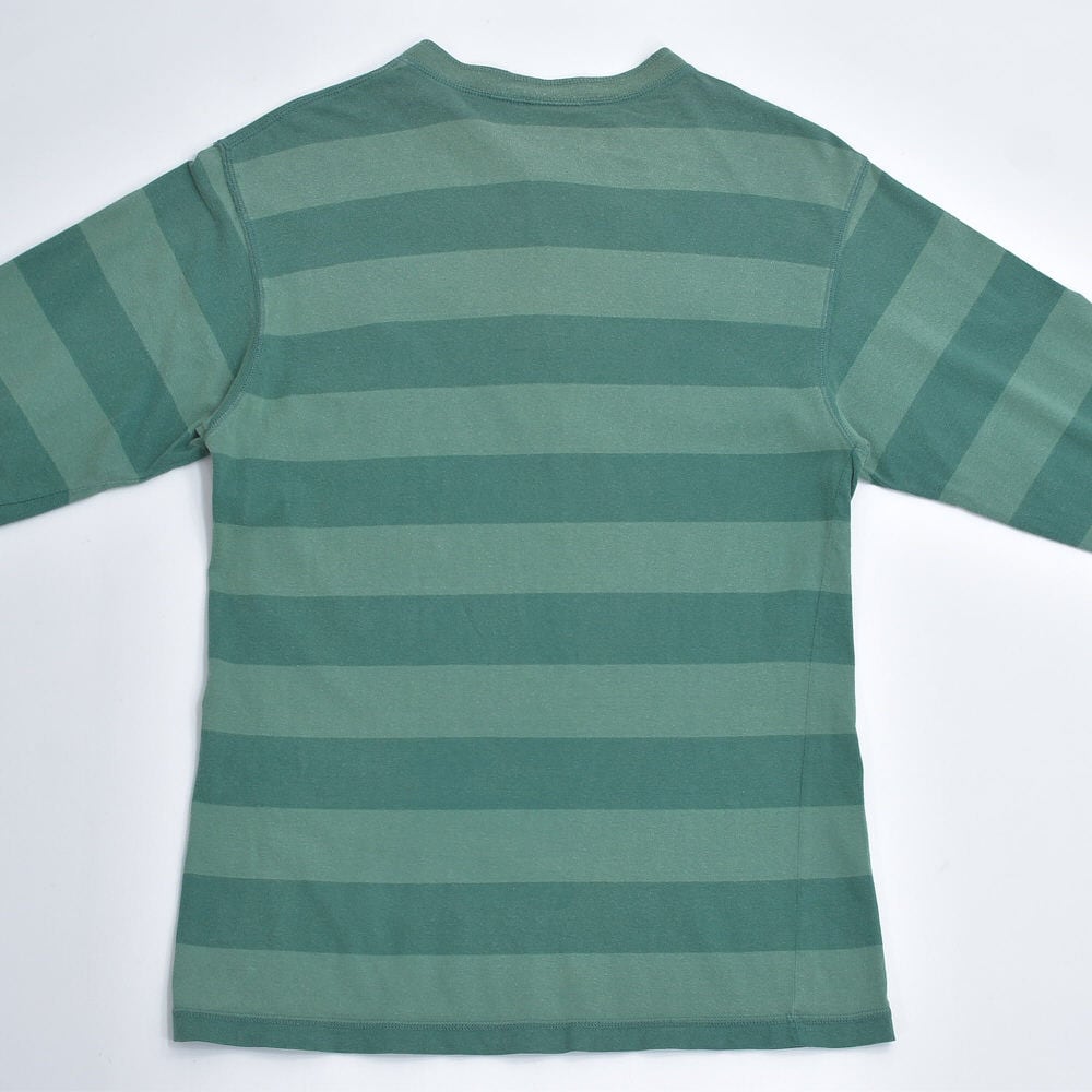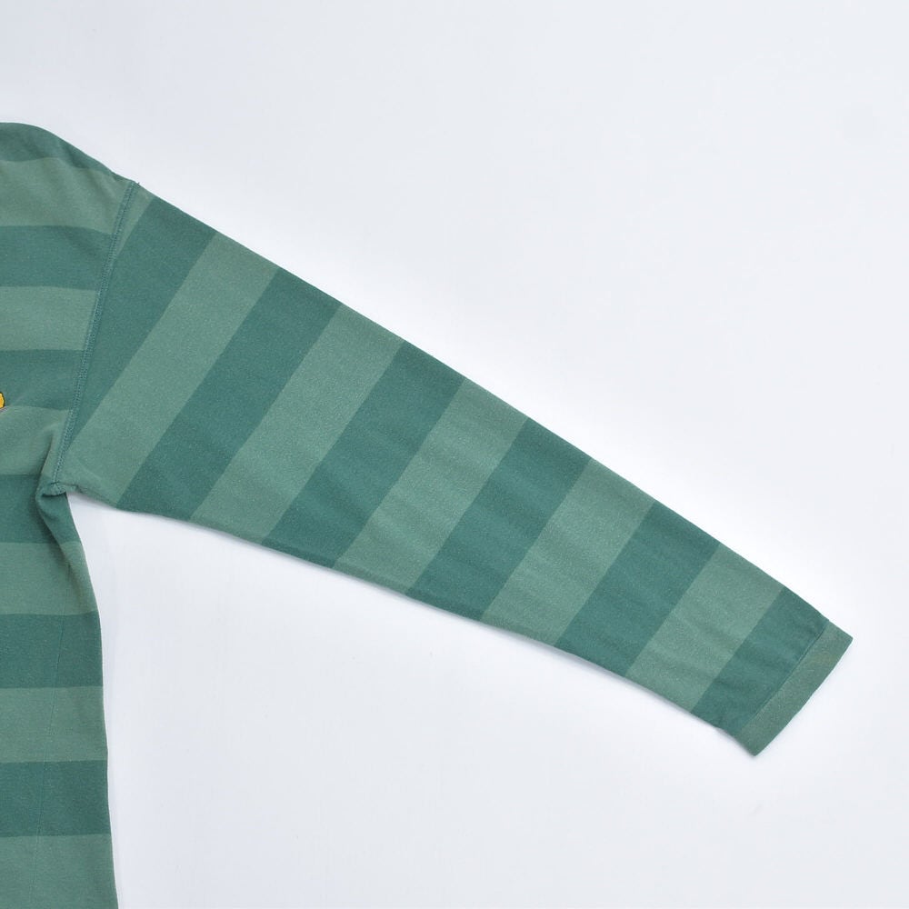 90s Disney ディズニー ドナルドダック キャラクター 刺繍 ボーダー ヘンリーネック ロングスリーブ Tシャツ グリーン ヴィンテージ ビンテージ USA アメリカ古着 メンズS~M相当