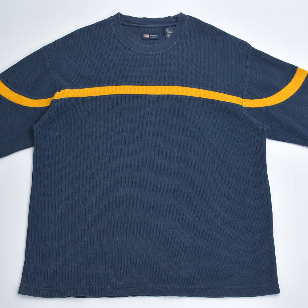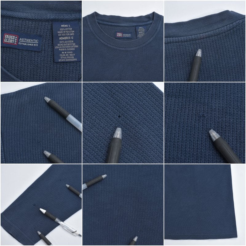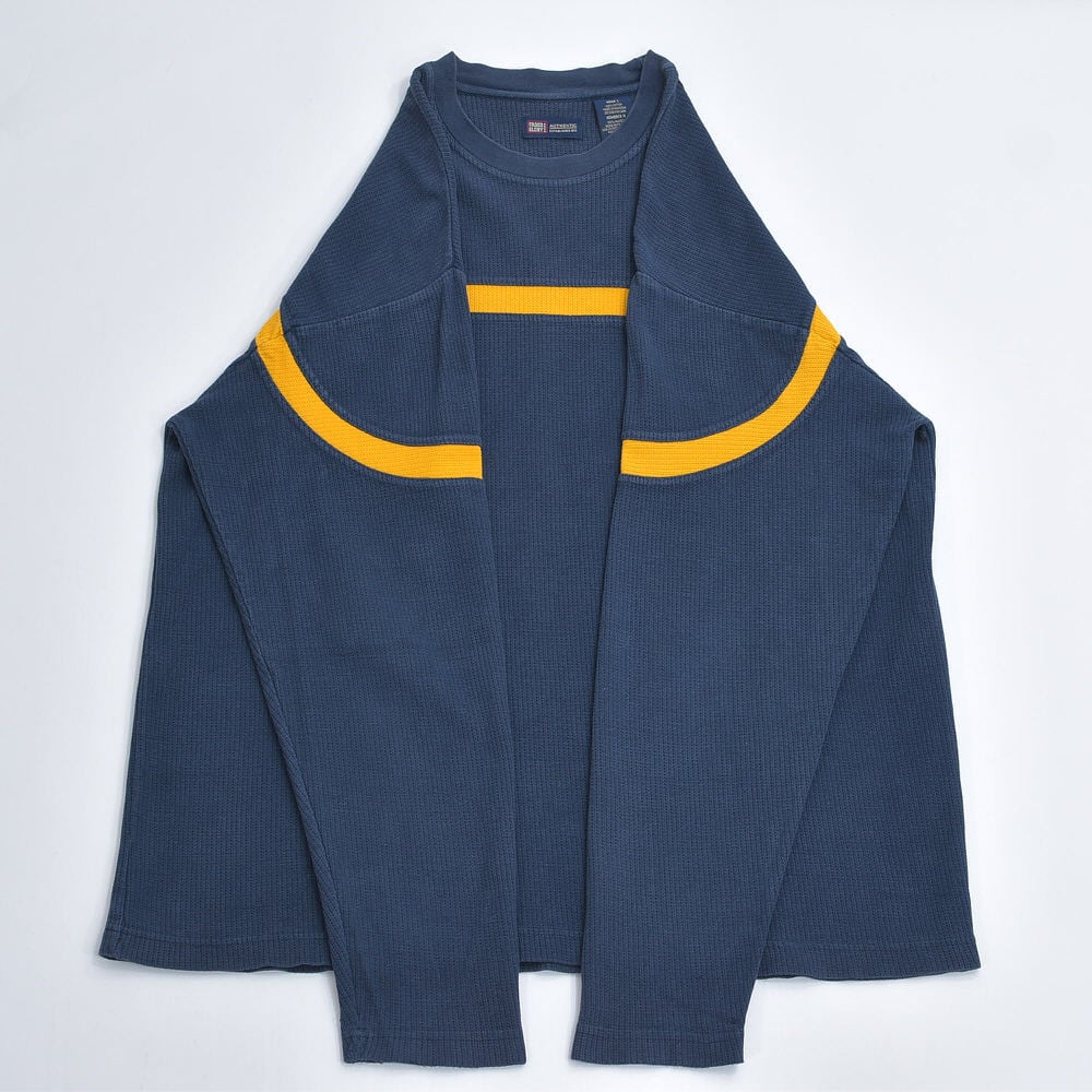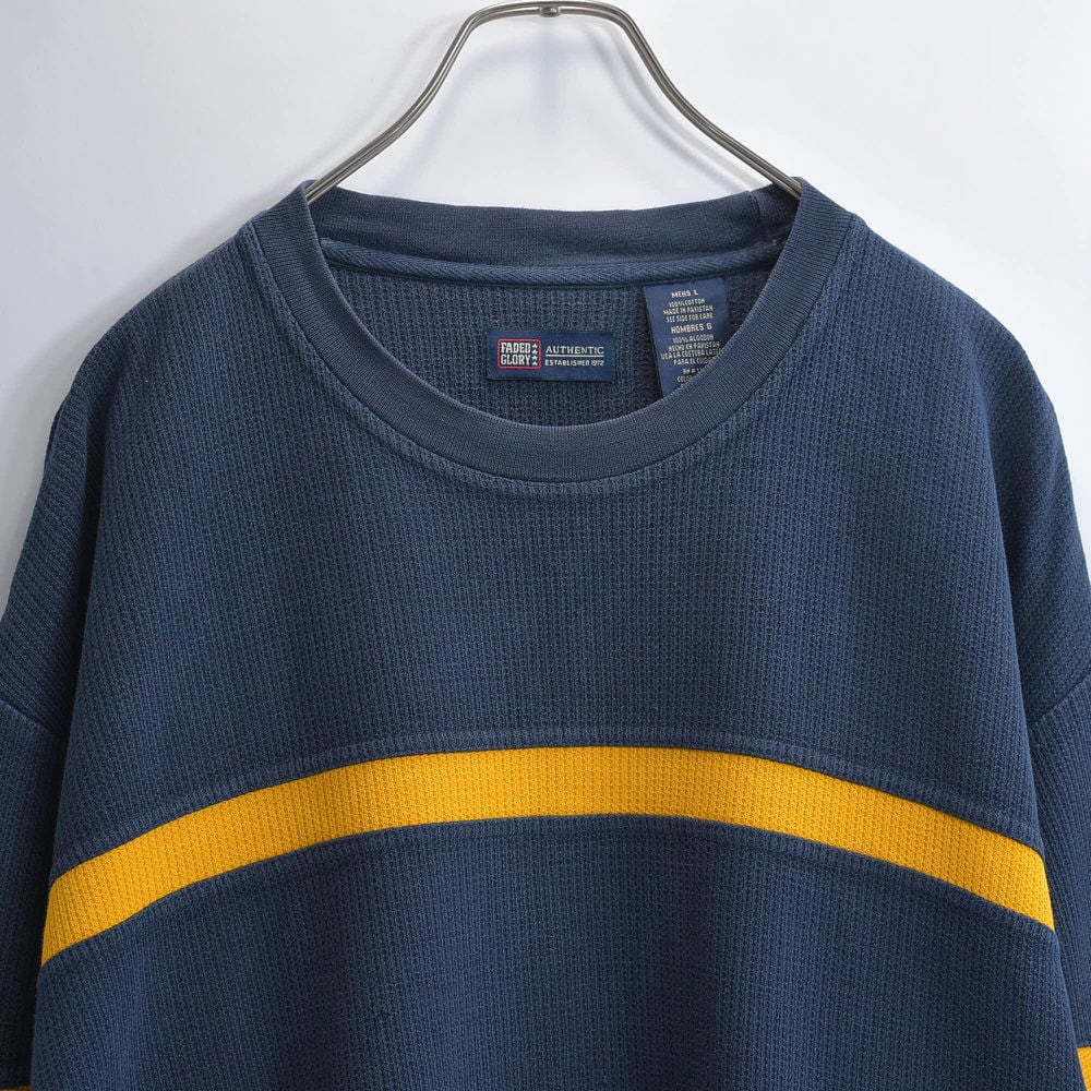 90~00S FADED GLORY フェイデッドグローリー ライン 切替 デザイン サーマル ワッフル ロングスリーブ Tシャツ ネイビー ヴィンテージ ビンテージ USA アメリカ古着 メンズXL相当
