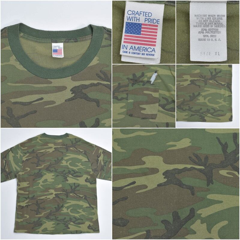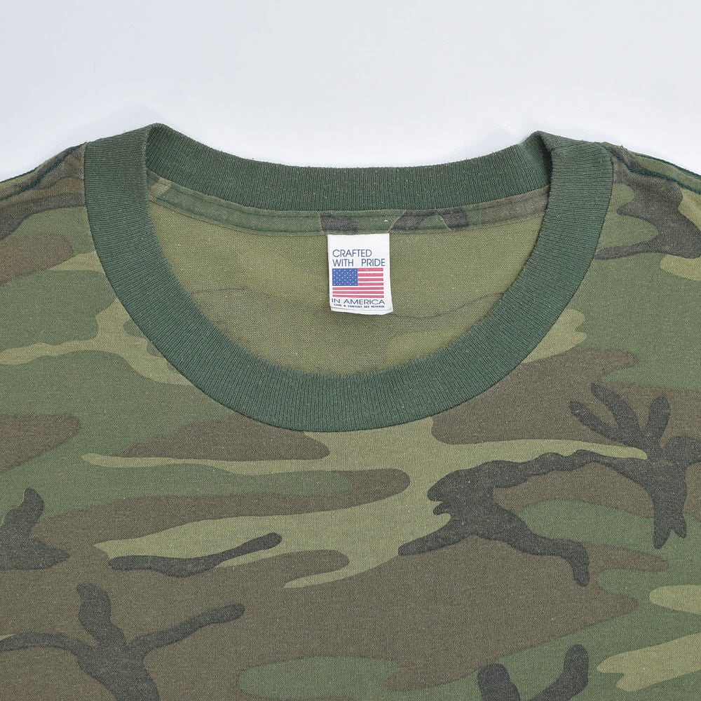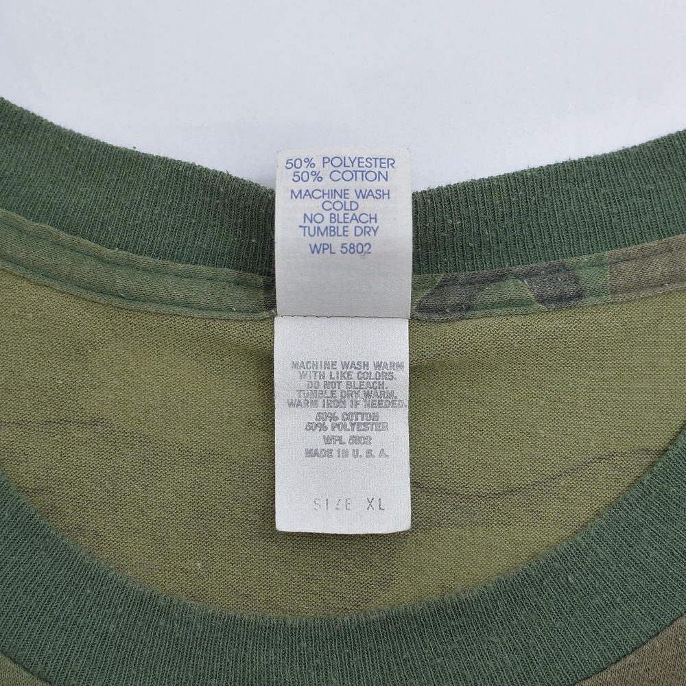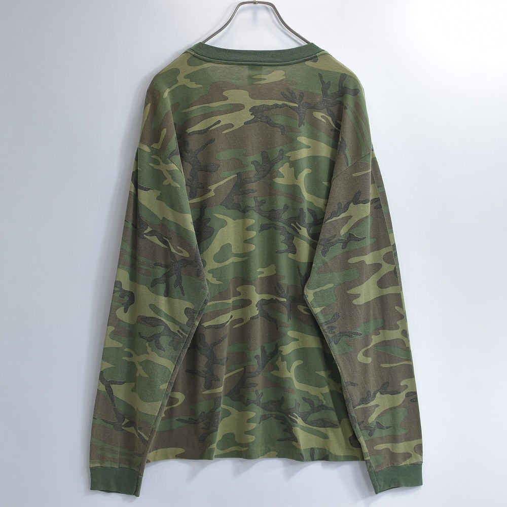 90s USA製 Vintage ウッドランドカモ 迷彩柄 ポケット ロングスリーブ Tシャツ ロンT ポケT ミリタリー アメカジ ヴィンテージ ビンテージ アメリカ古着 メンズXLサイズ
