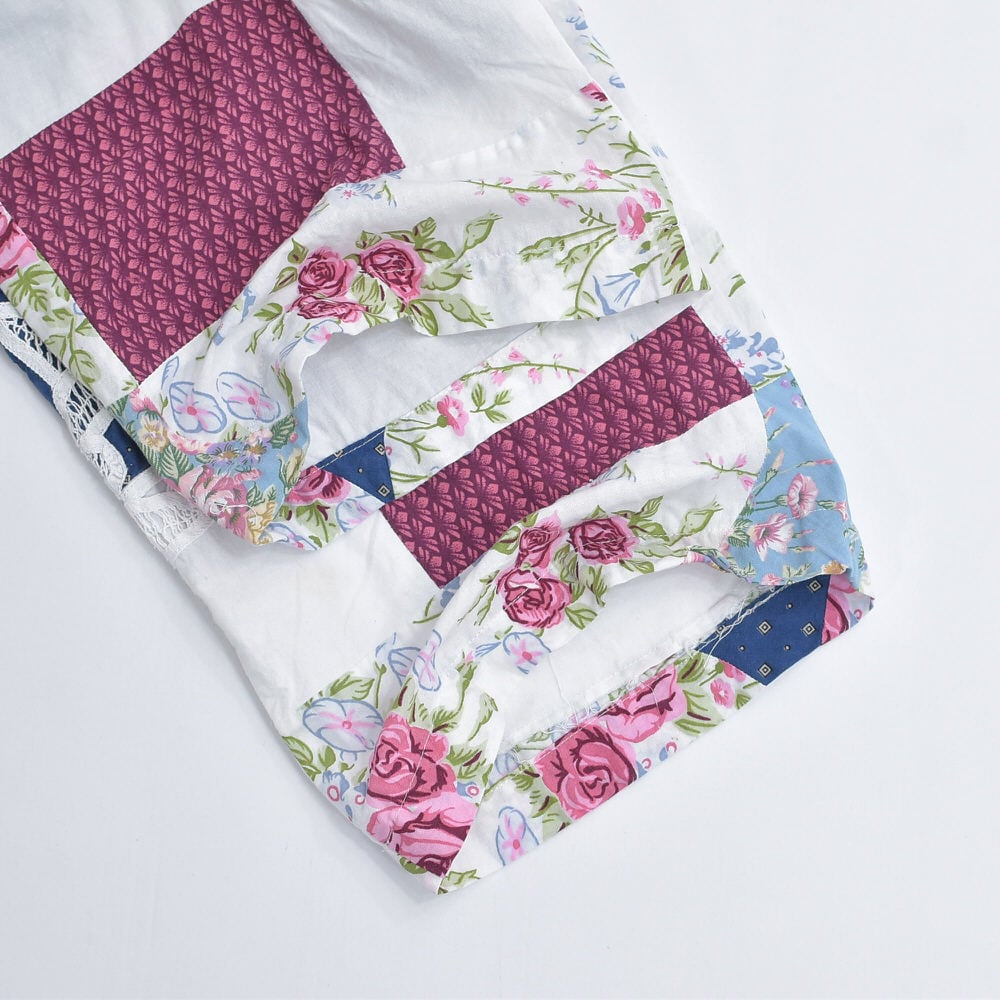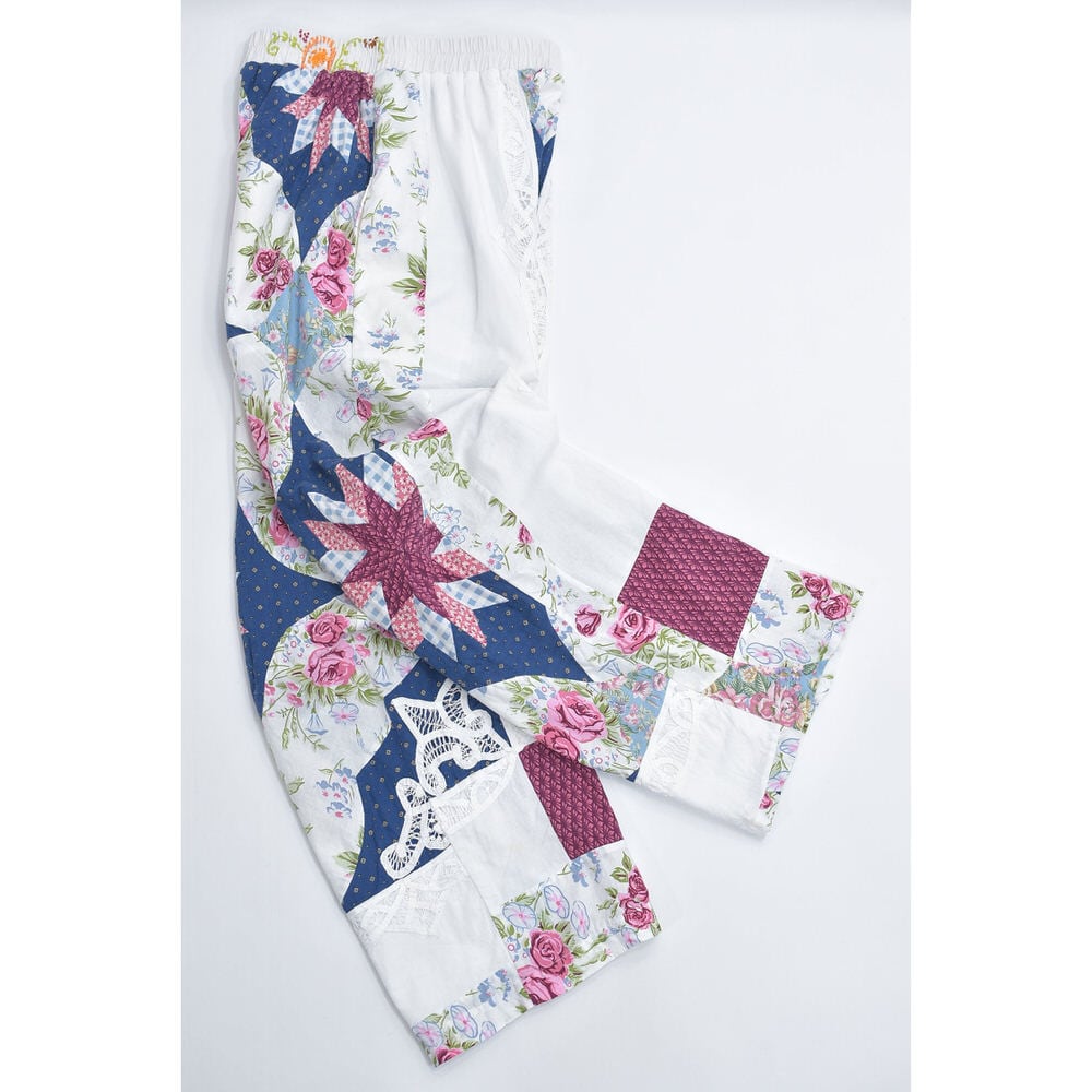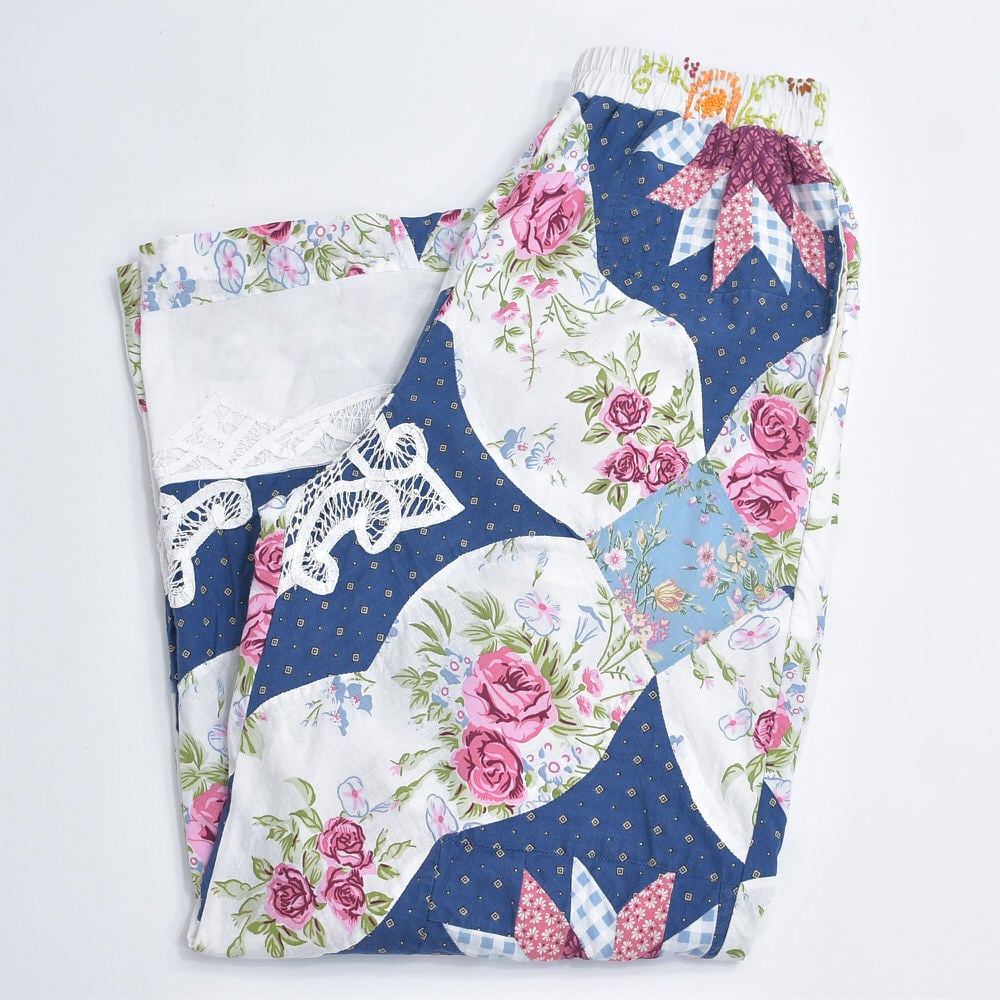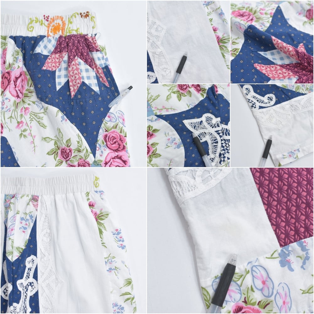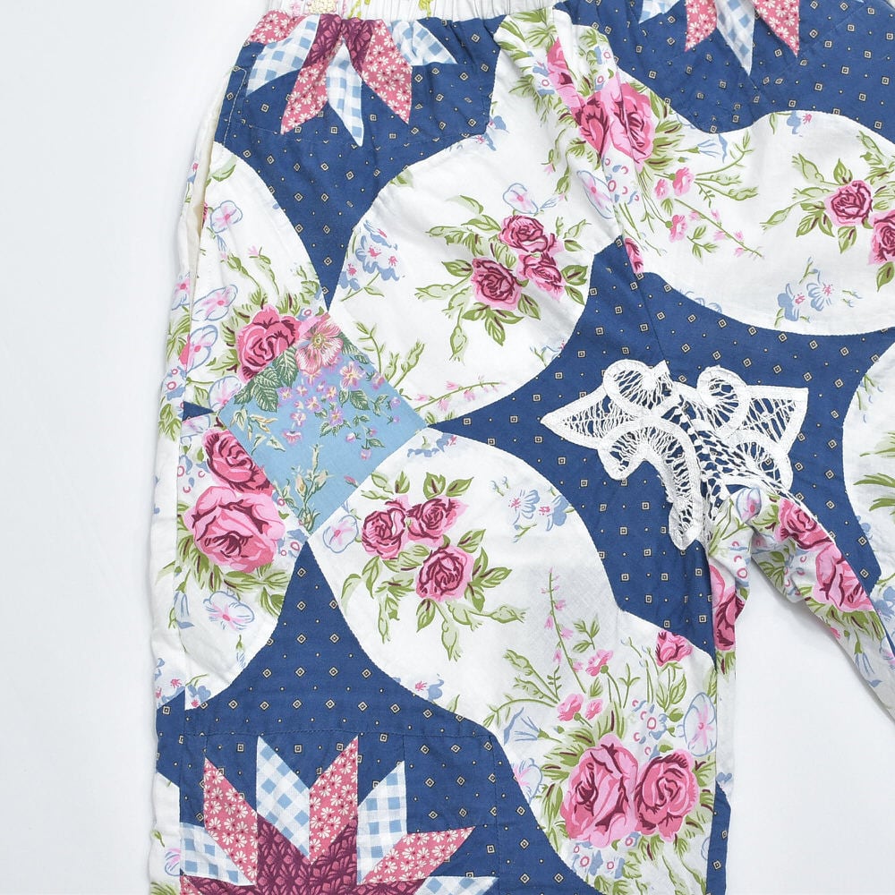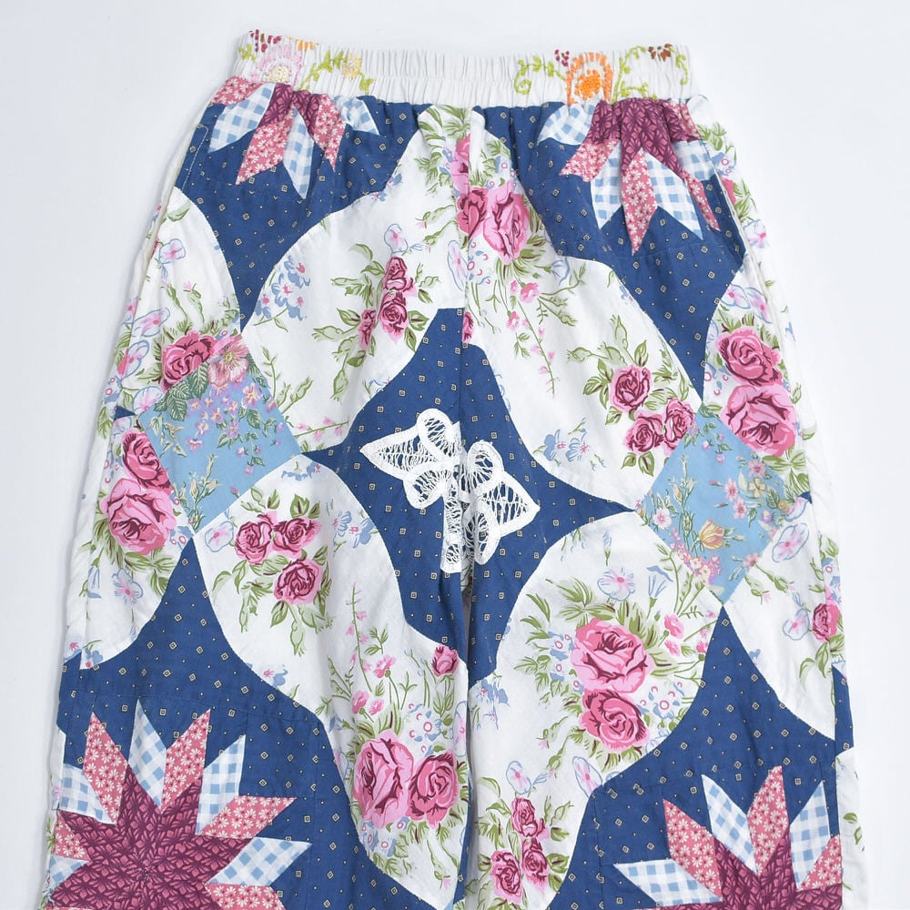 Remake リメイク ハンドメイド パッチワーク キルトトップ ルーズシルエット イージーパンツ 花柄 レース 再構築 ツギハギ W66〜94cm