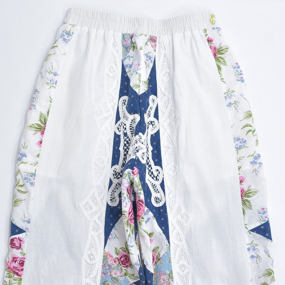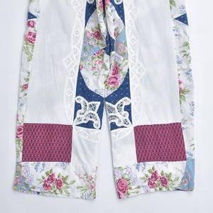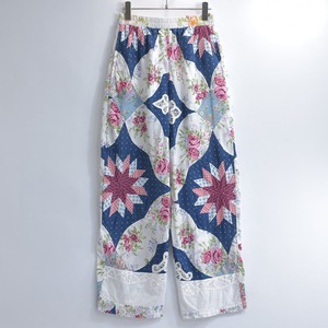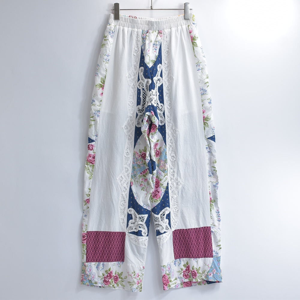 Remake リメイク ハンドメイド パッチワーク キルトトップ ルーズシルエット イージーパンツ 花柄 レース 再構築 ツギハギ W66~94cm