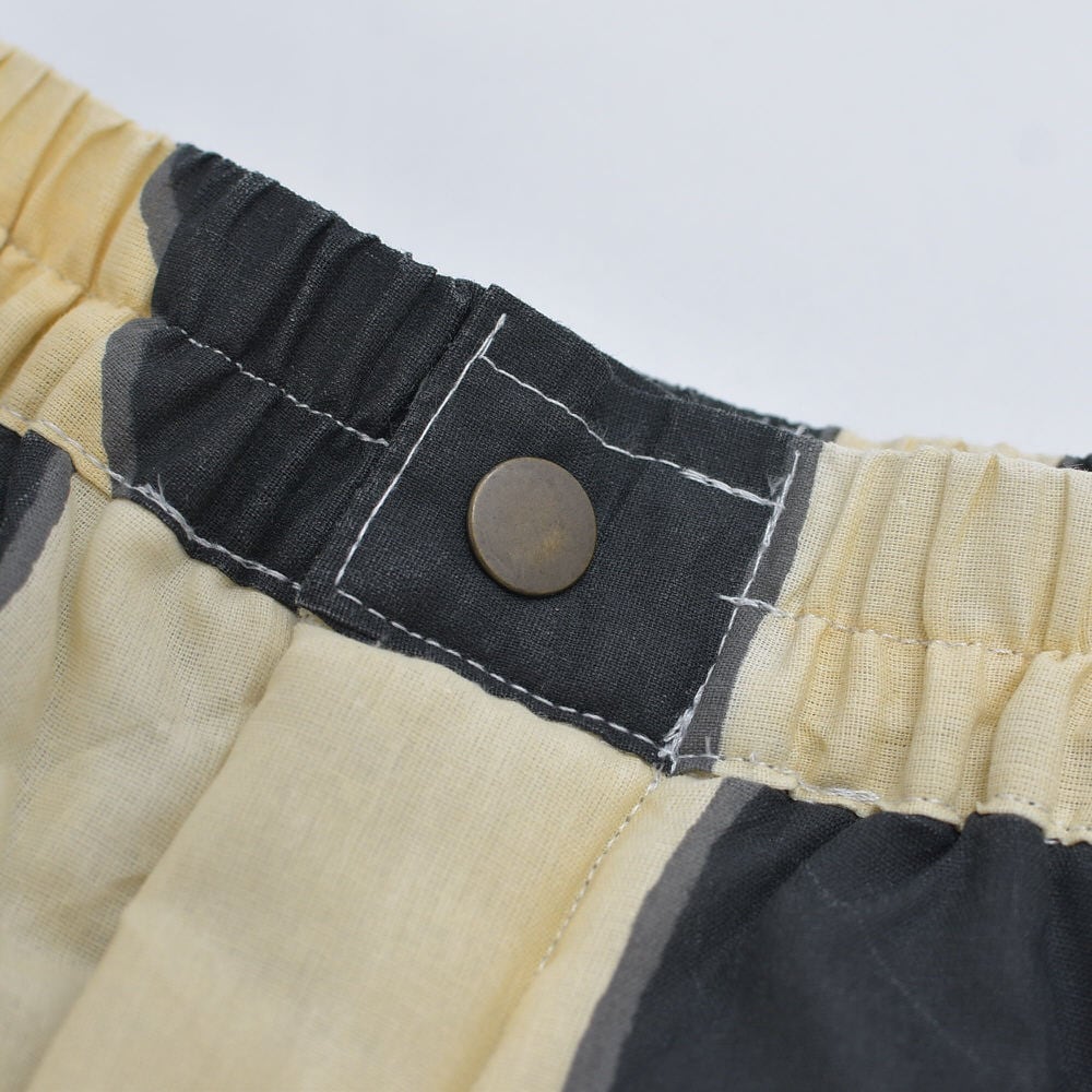 皆さんが大好きなパッチワークキルトではありませんが、トップ、中綿、バッキングの三層構造となり、紛れもないキルトのボトムス