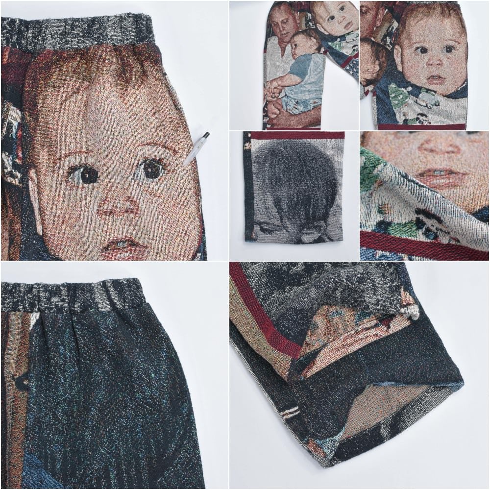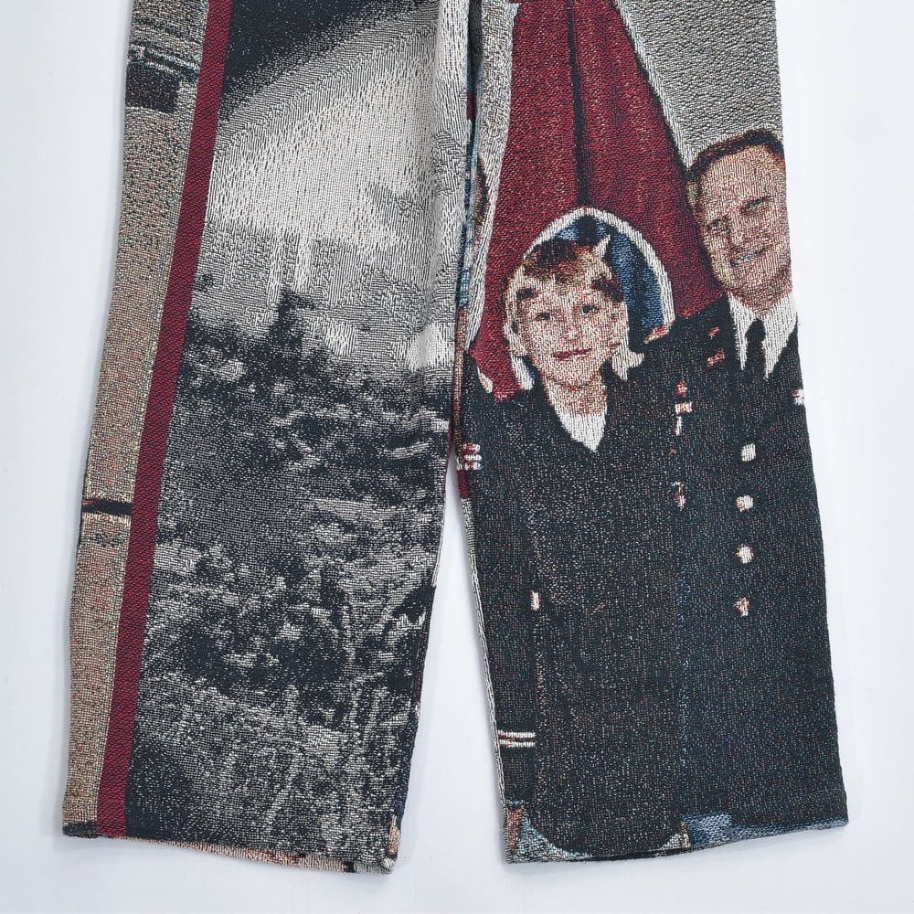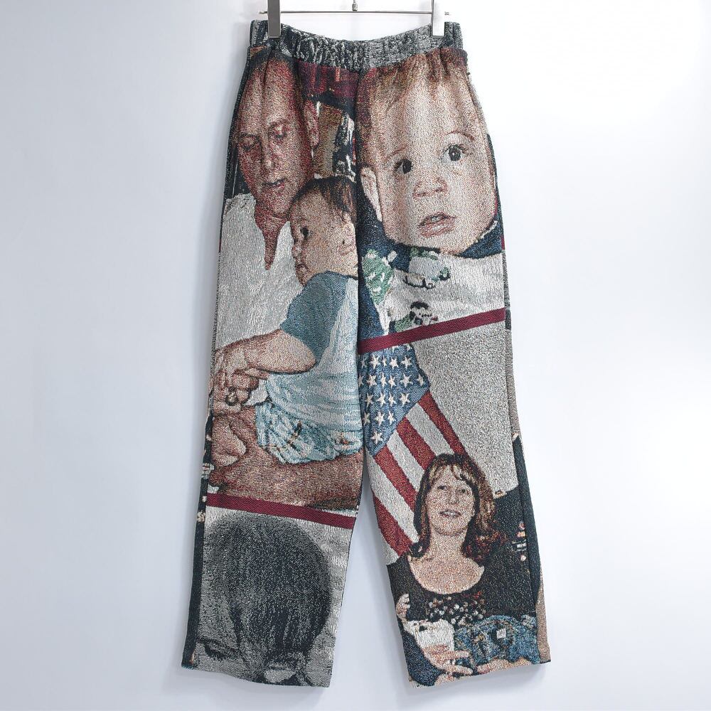 Remake リメイク ルーズシルエット ジャガード メモリアルフォト風 デザイン ラグパンツ ブランケット パッチワーク イージーパンツ 再構築 コットン マルチカラー W68~90cm