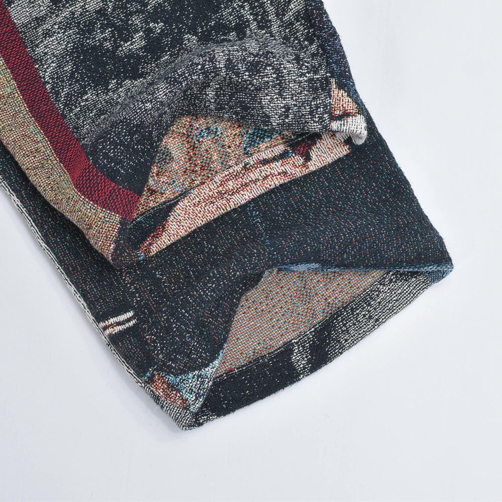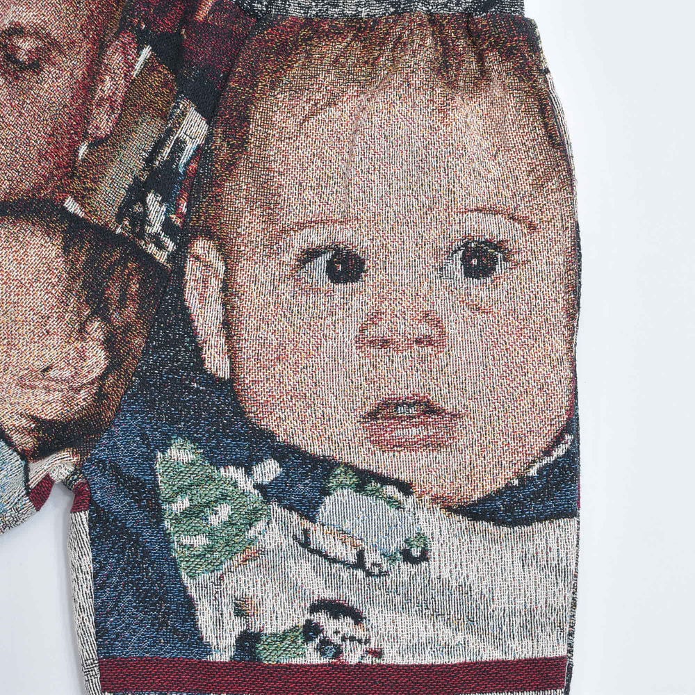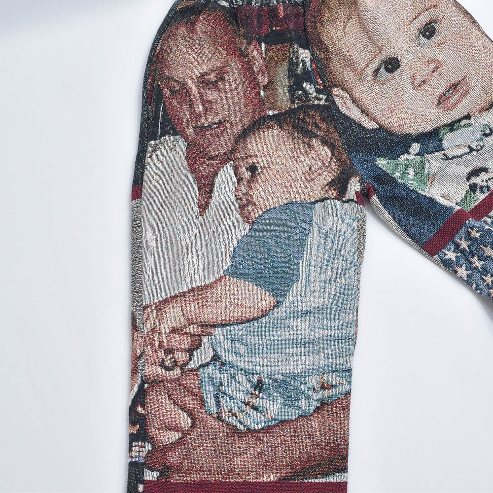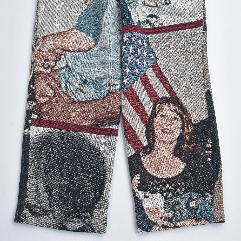 Remake リメイク ルーズシルエット ジャガード メモリアルフォト風 デザイン ラグパンツ ブランケット パッチワーク イージーパンツ 再構築 コットン マルチカラー W68~90cm