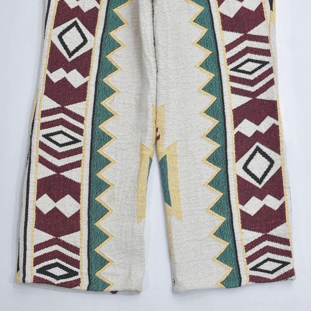 Remake リメイク ルーズシルエット ジャガード ネイティブ柄 デザイン ラグパンツ トライバル ブランケット パッチワーク イージーパンツ 再構築 コットン アイボリー W68~96cm