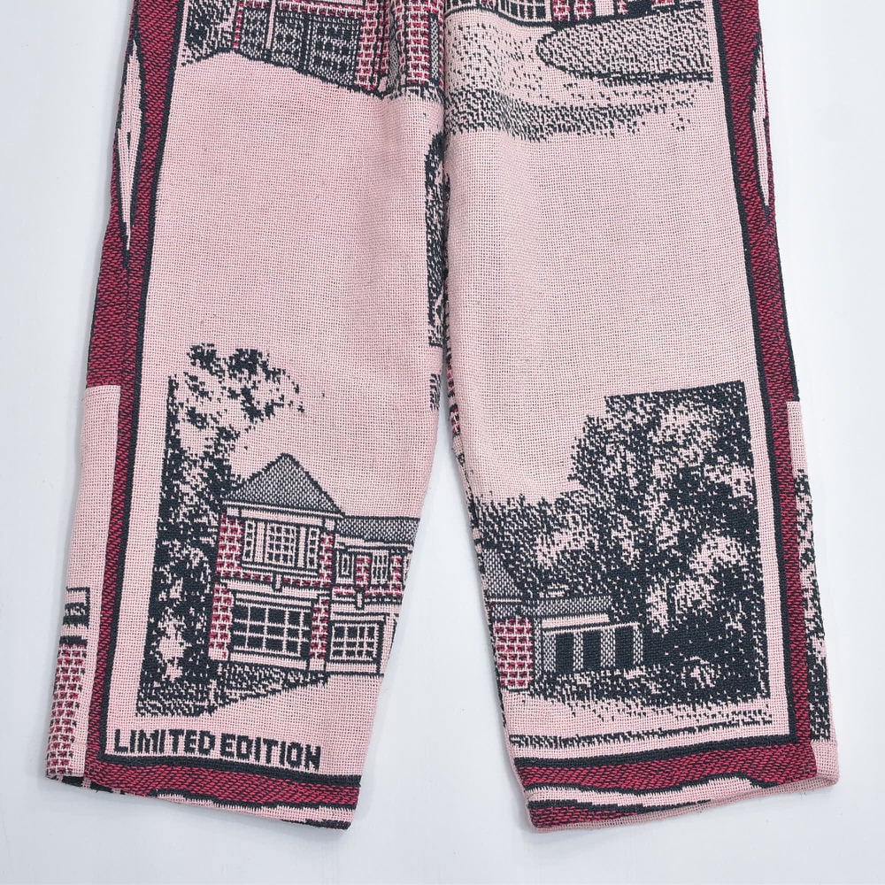 Remake リメイク ルーズシルエット ジャガード 風景柄 デザイン ラグパンツ ブランケット パッチワーク イージーパンツ 再構築 コットン ピンク ボルドー W68~92cm