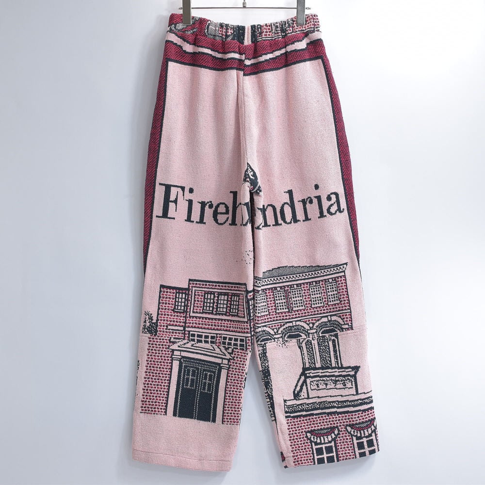Remake リメイク ルーズシルエット ジャガード 風景柄 デザイン ラグパンツ ブランケット パッチワーク イージーパンツ 再構築 コットン ピンク ボルドー W68〜92cm
