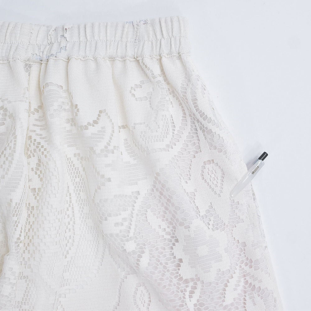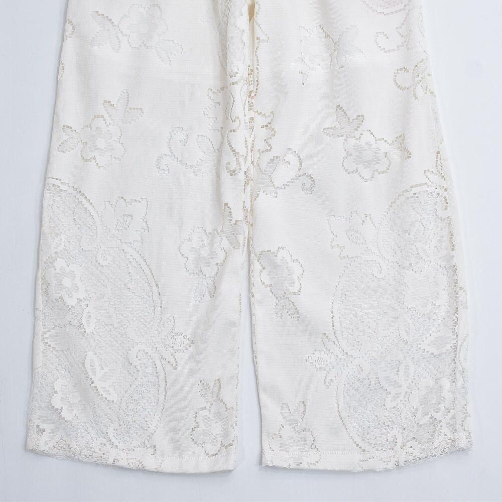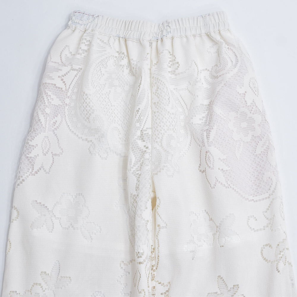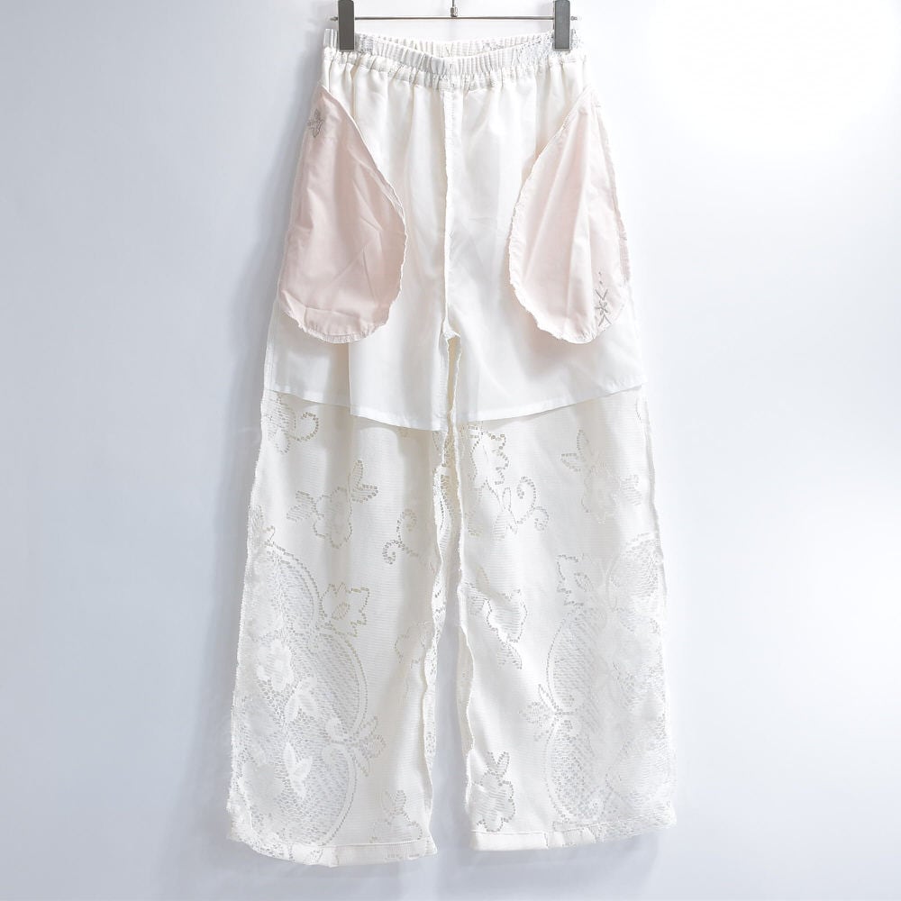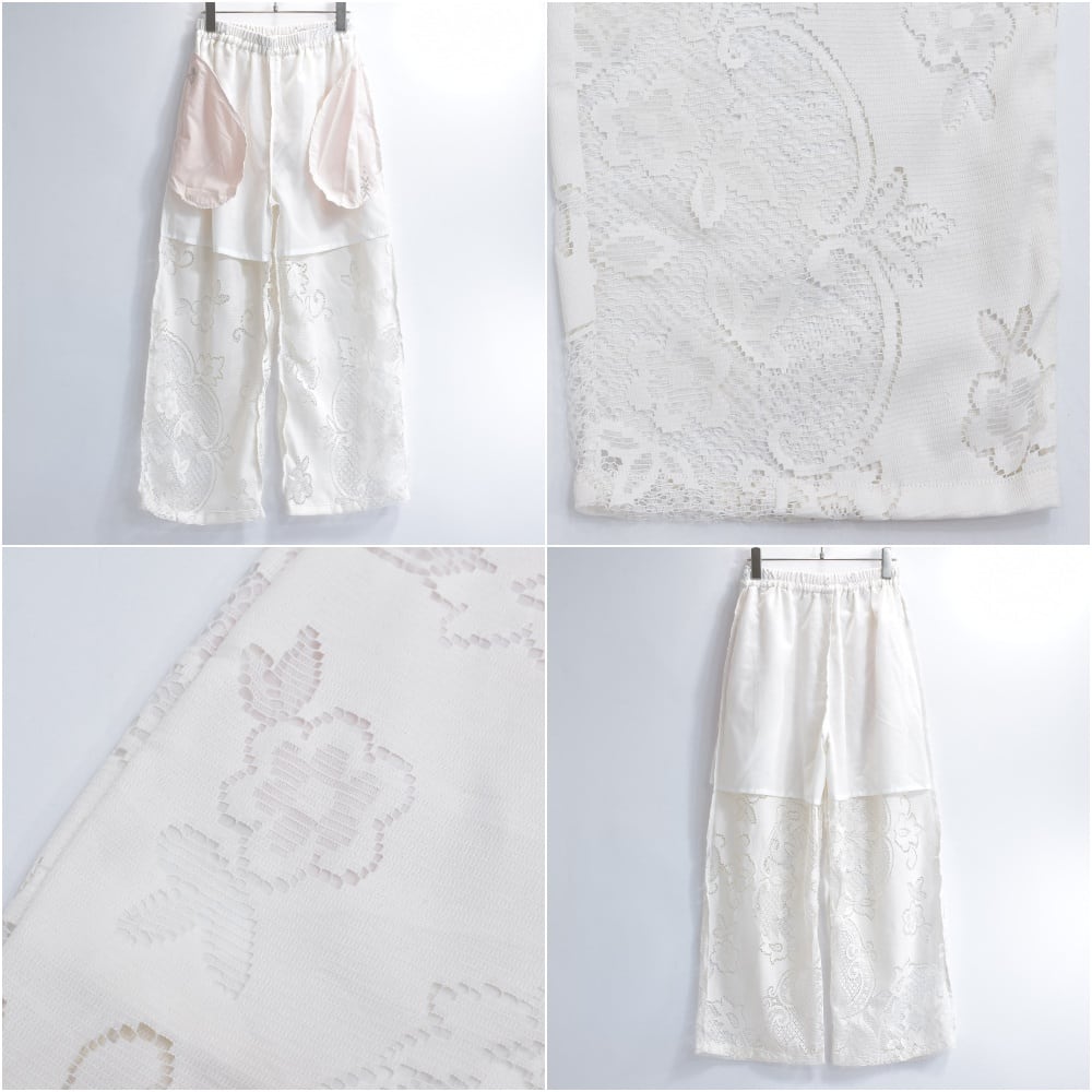 Remakeリメイク フラワーデザイン ラッセルレース ルーズシルエット イージーパンツ フローラル 花柄 パッチワーク オフホワイト 裏地付き W64~88cm