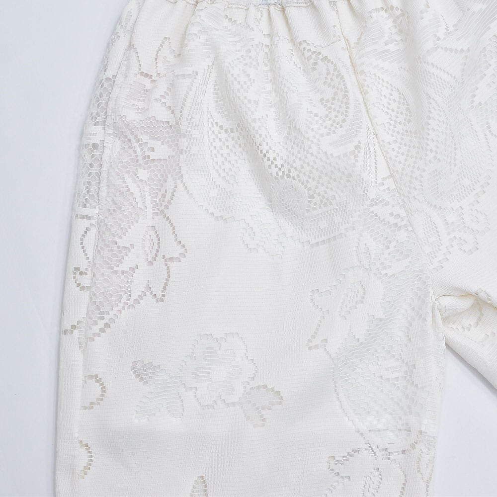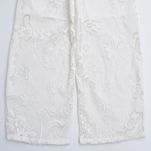 Remakeリメイク フラワーデザイン ラッセルレース ルーズシルエット イージーパンツ フローラル 花柄 パッチワーク オフホワイト 裏地付き W64〜88cm