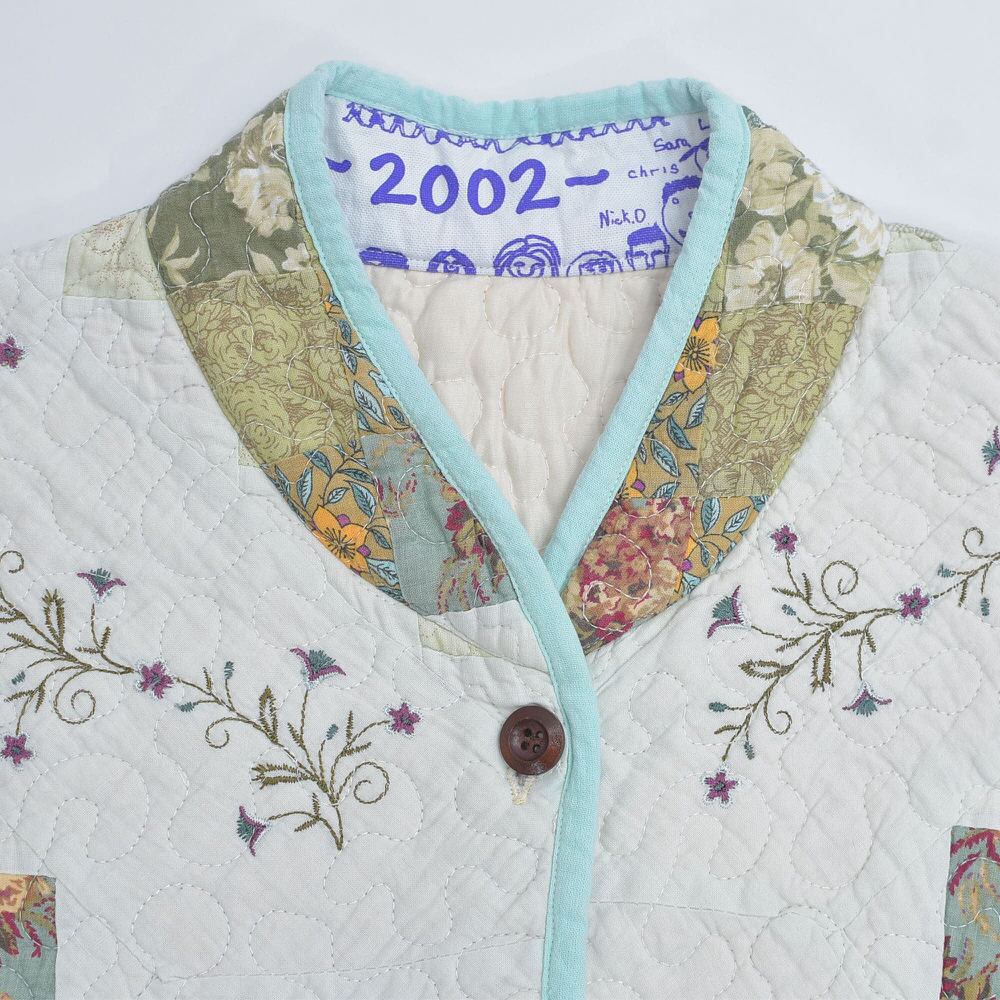 Remake ハンドメイド デザイン リメイク パッチワーク キルト 刺繍 ベスト アウター 再構築 ツギハギ 中綿入り 花柄 レディースXL相当