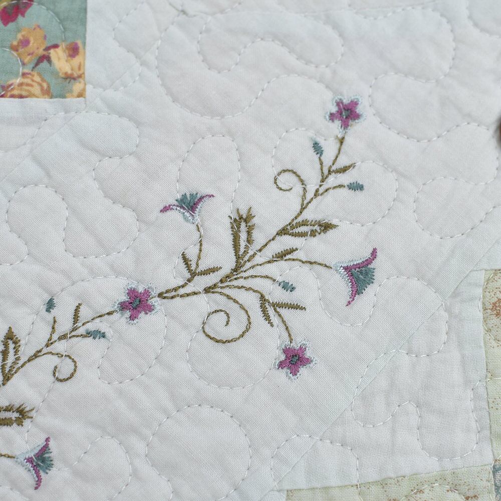 ホワイトをベースに、色々な雰囲気の花柄を使い、繊細なお花の刺繍をあしらった素敵な佇まい