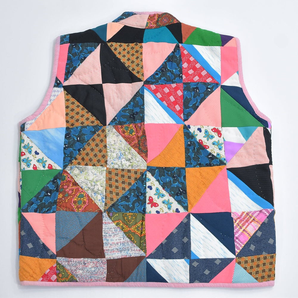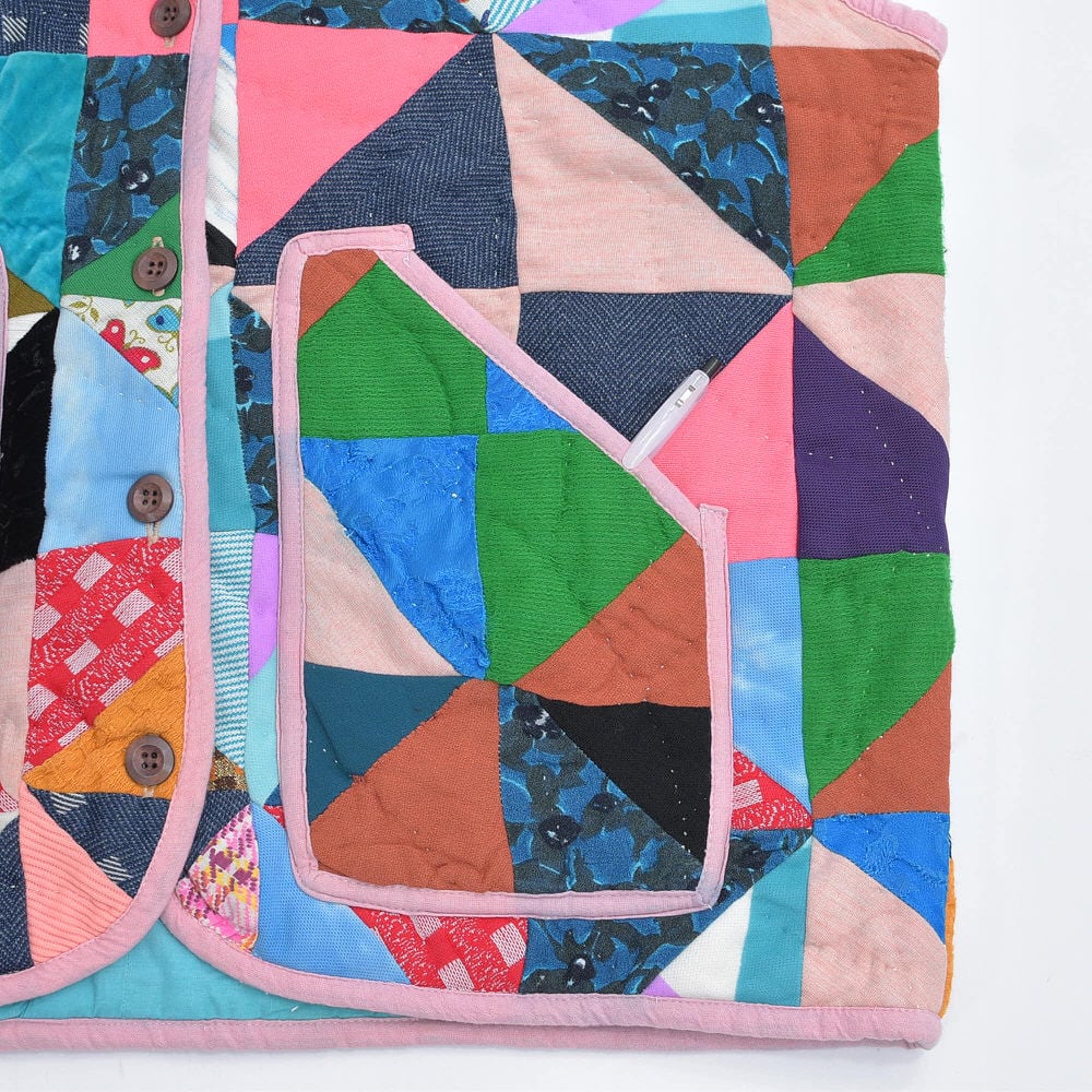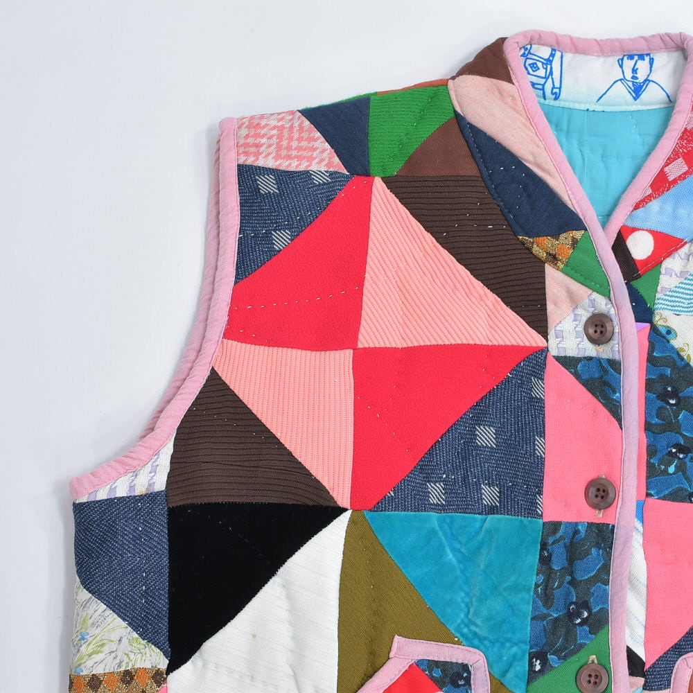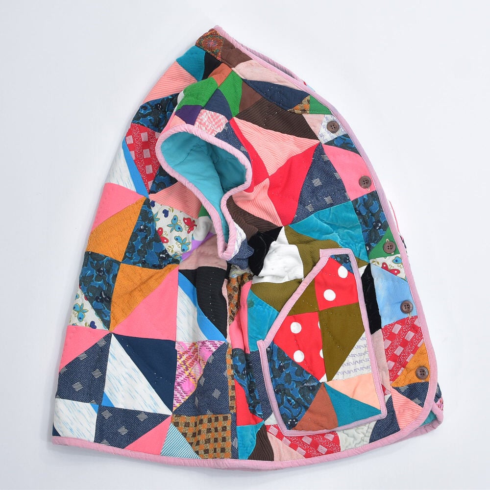 驚きと共に羽織ってみたい好奇心に駆られてしまうパッチワークのリメイクキルトベスト