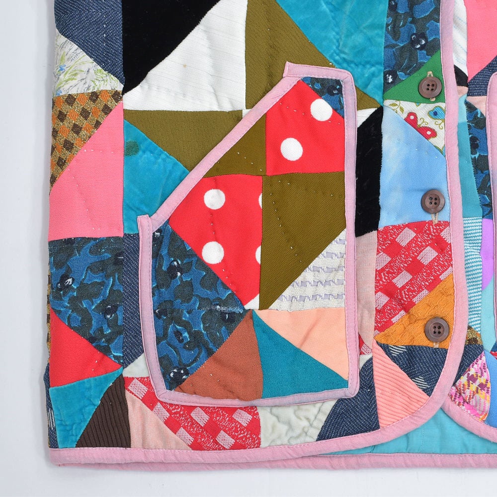 Remake ハンドメイド デザイン リメイク パッチワーク キルト ベスト アウター 再構築 ツギハギ 中綿入り マルチカラー 花柄 レディースXL相当