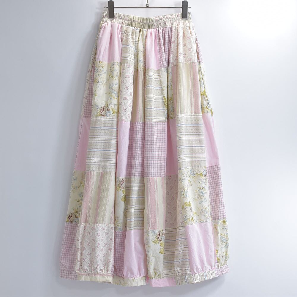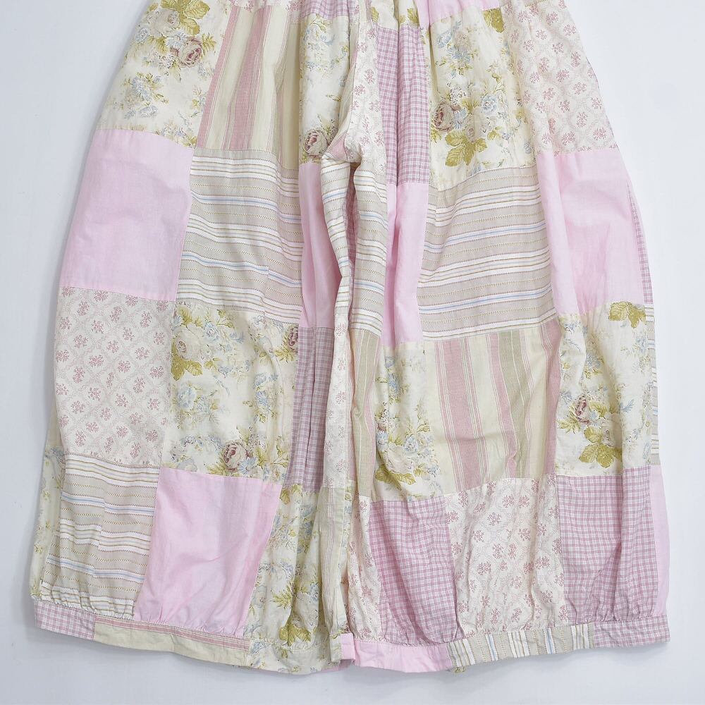 Remake リメイク 再構築 デザイン パッチワーク キルトトップ スーパーバルーンシルエット イージーパンツ ワイド コットン ピンク ツギハギ 裏地付き 古着 W63~94cm