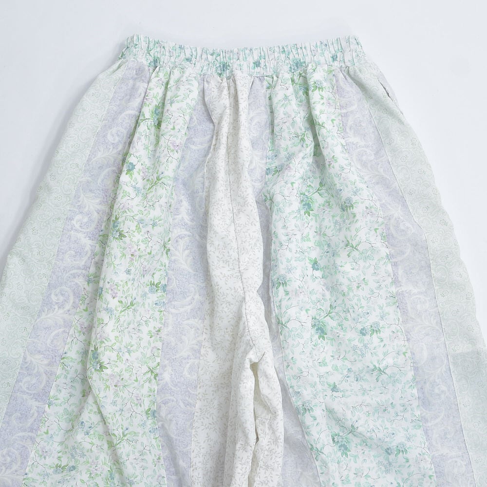 Remake リメイク 再構築 パッチワーク デザイン バルーンシルエット イージーパンツ ワイド コットン パステルカラー 花柄 ツギハギ 裏地付き 古着 W64〜92cm