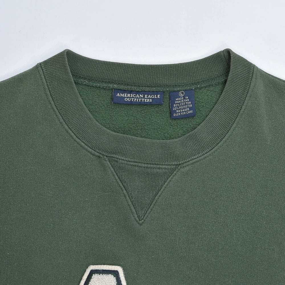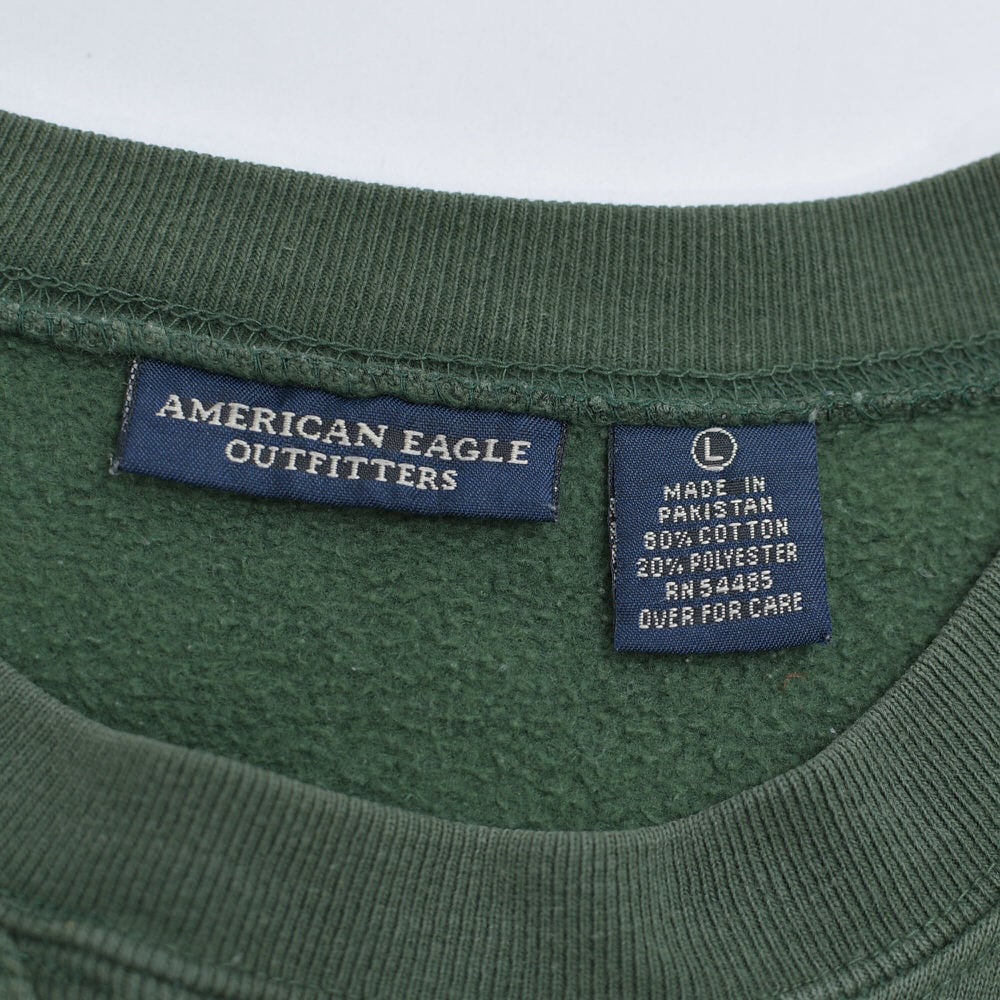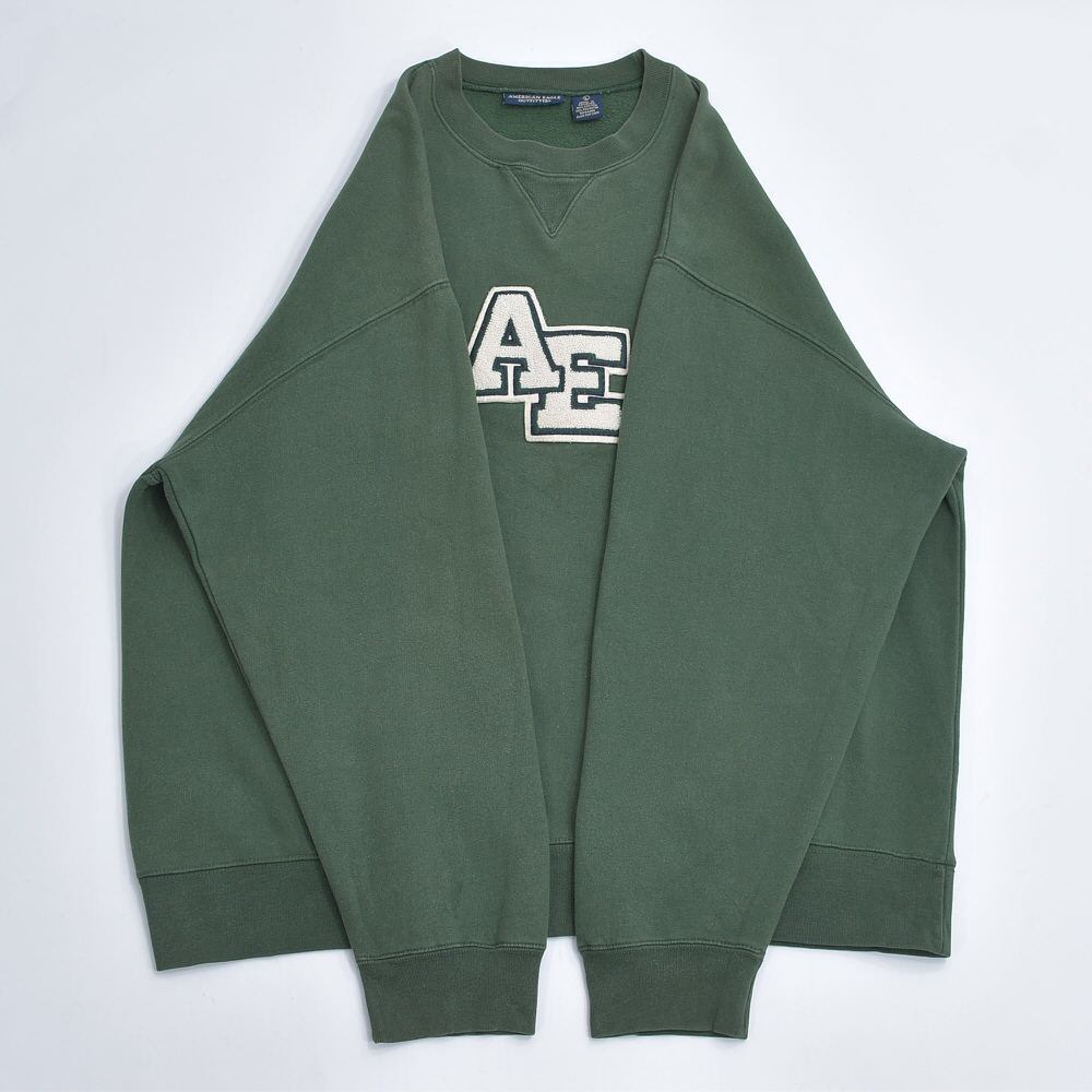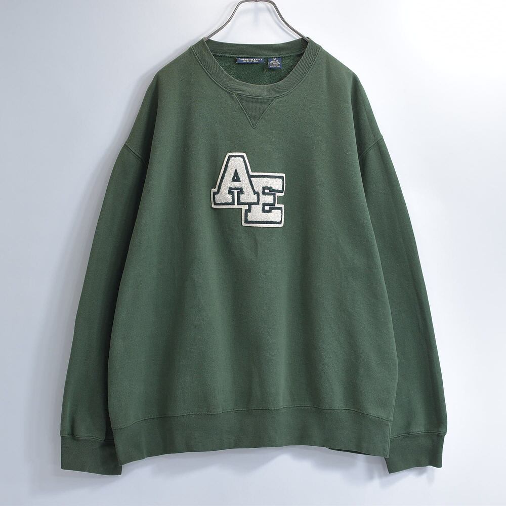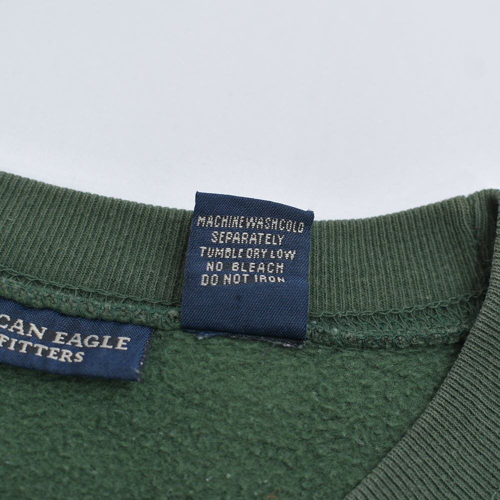90~00s American Eagle Outfitters アメリカンイーグル 前Vガゼット サガラワッペン ロゴ スウェット トレーナー アメカジ グリーン ヴィンテージ ビンテージ アメリカ古着 メンズ XL~相当