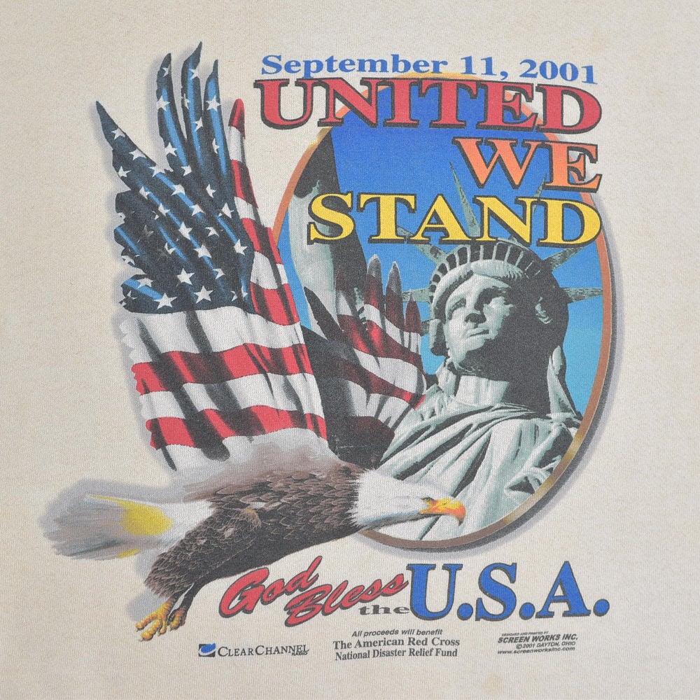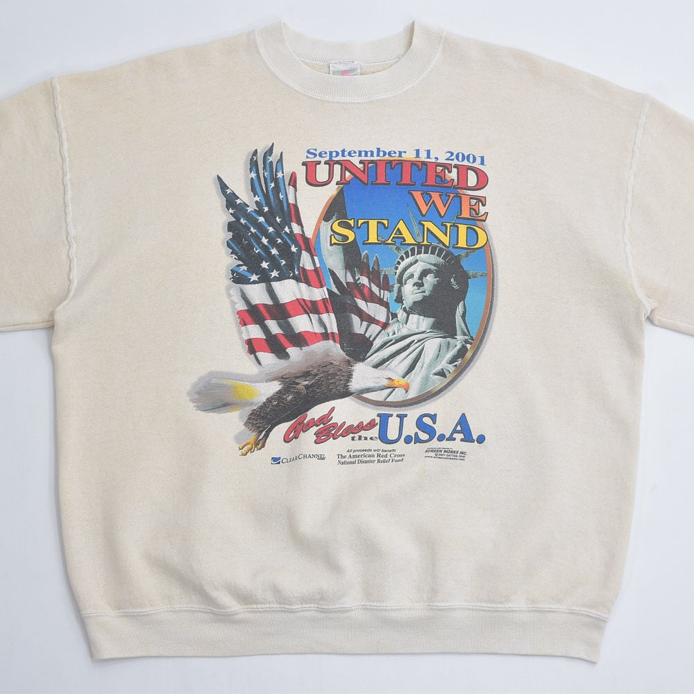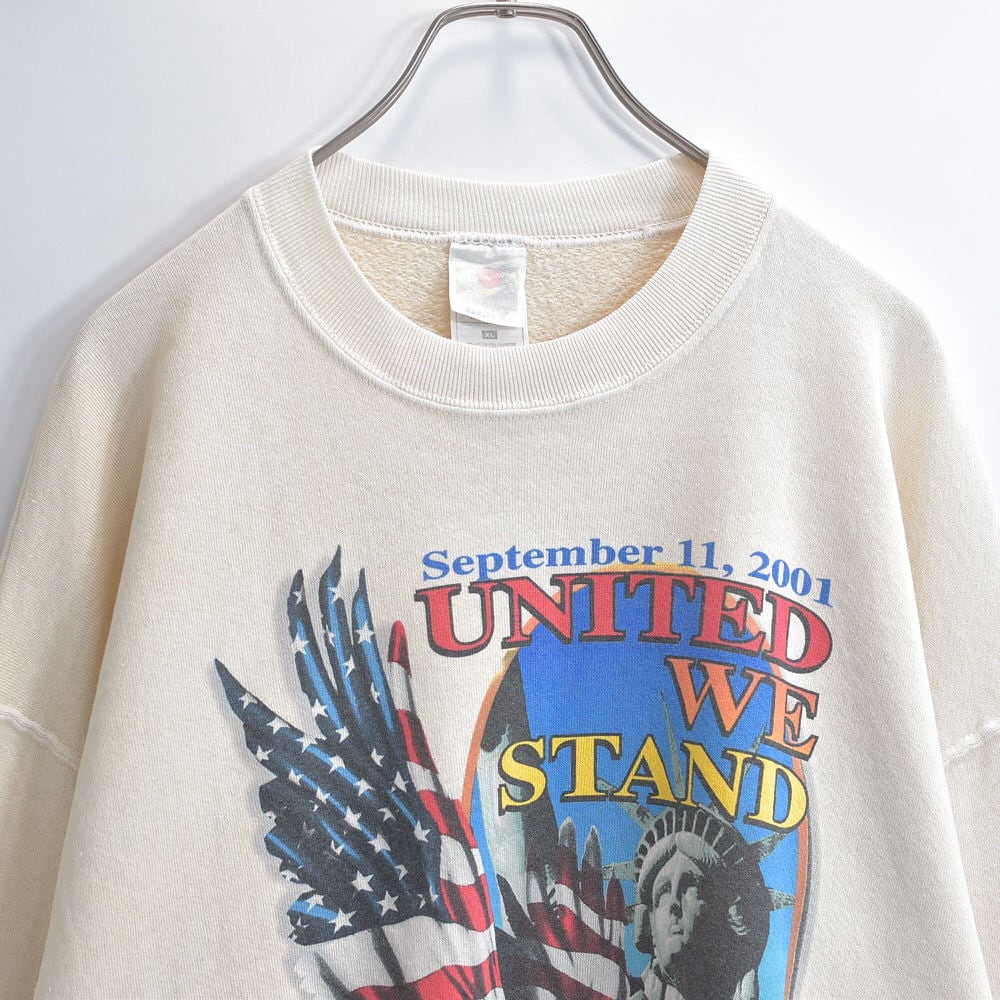00s FRUIT OF THE LOOM フルーツオブザルーム 9.11 追悼 チャリティ プリント U.S.A. 自由の女神 イーグル スウェットシャツ ヴィンテージ ビンテージ アメリカ古着 メンズXLサイズ
