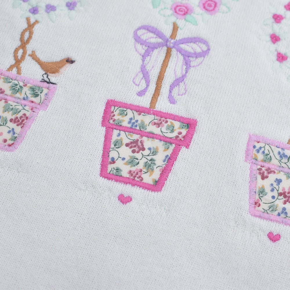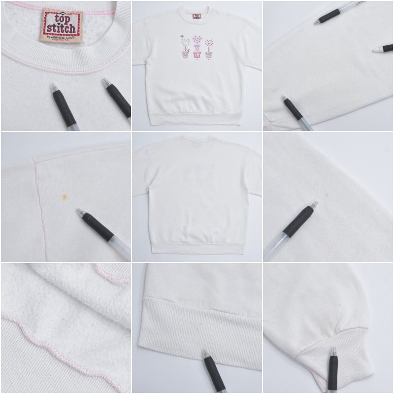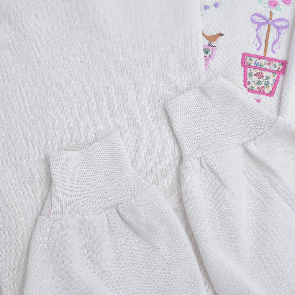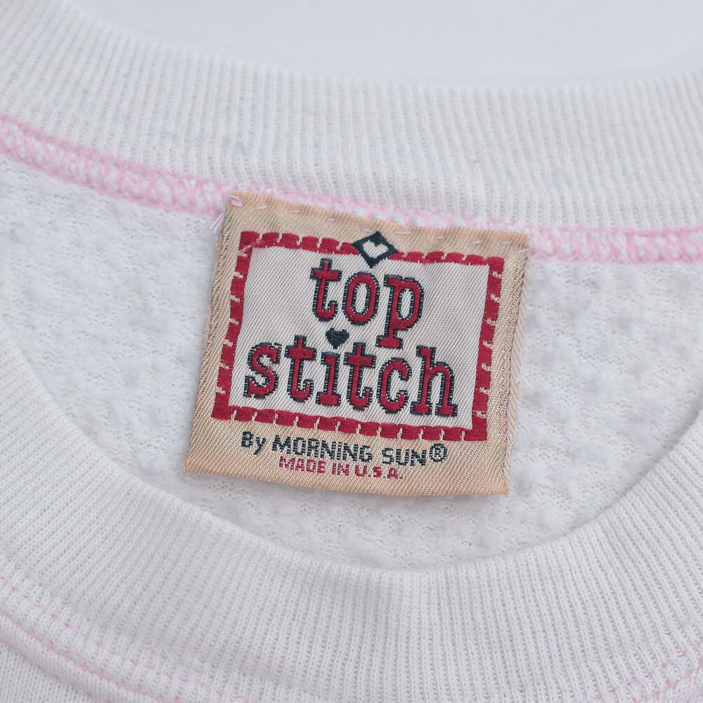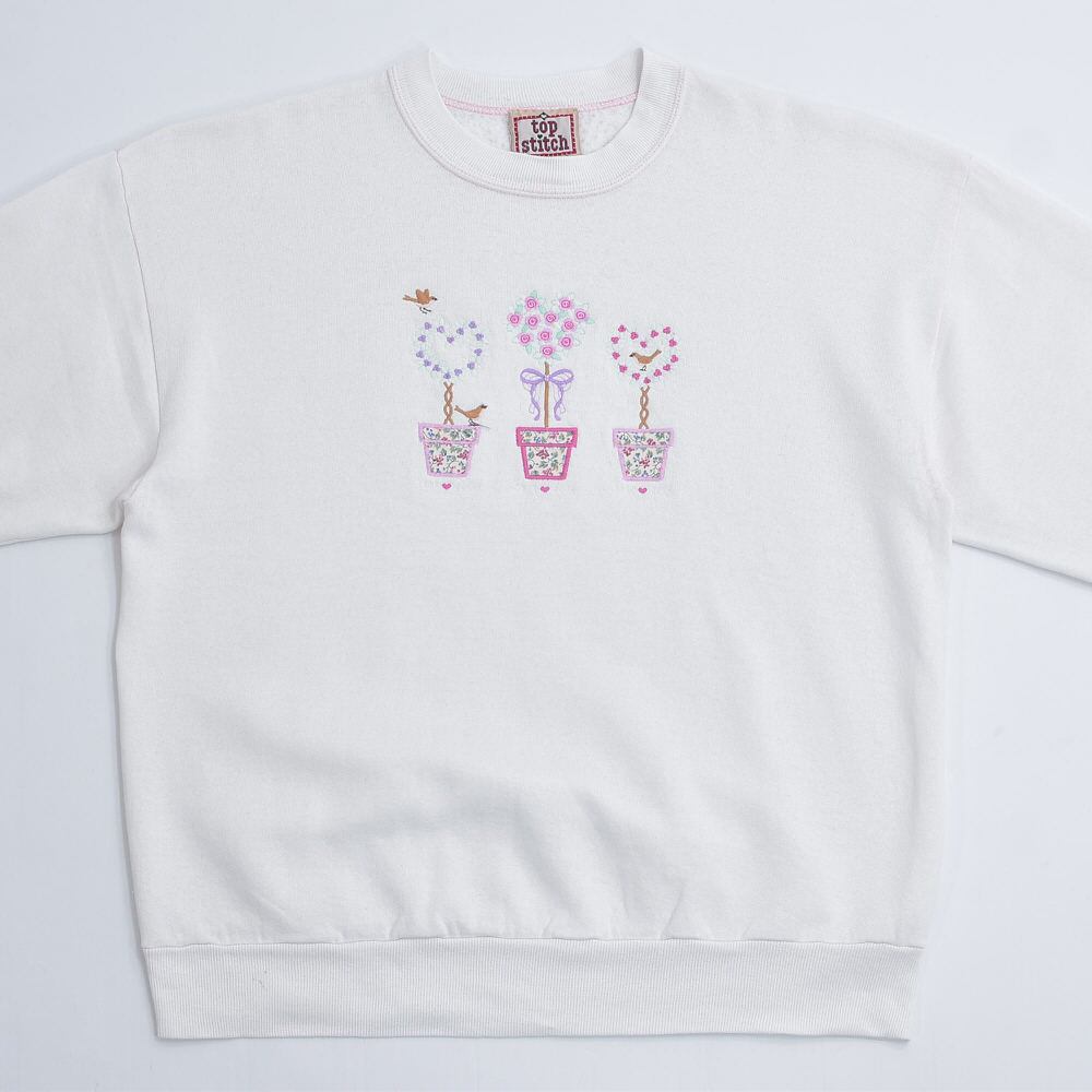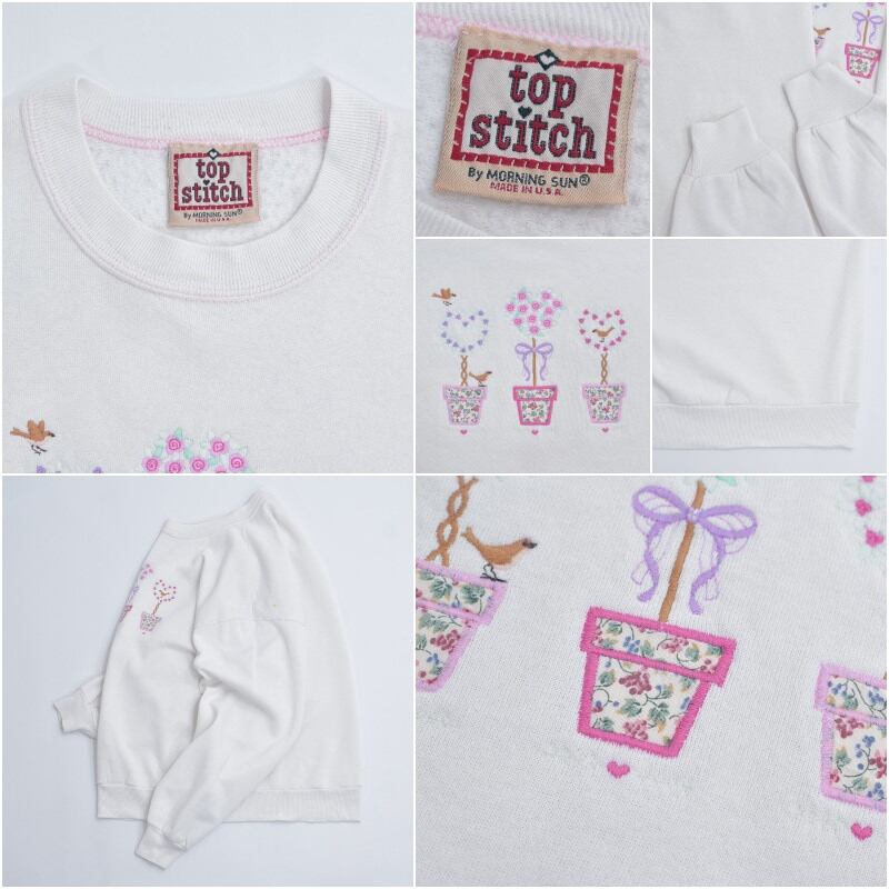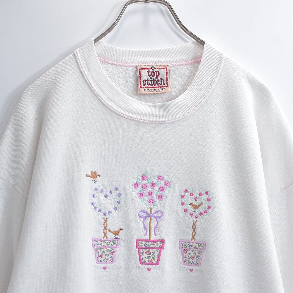 90s USA製 Top Stitch by Morning Sun トップステッチ ハート トピアリー 刺繍デザイン アート スウェット トレーナー ホワイト ヴィンテージ ビンテージ USA アメリカ古着 レディースXXL相当