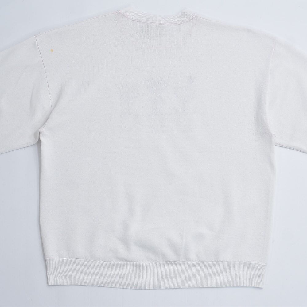 ・使用感や、フロントの襟リブ付近、右裾付近、右袖口付近、後ろの左肩付近、右ひじ付近、右袖口付近に汚れがありますが、その他目立つ汚れ、ダメージは見当たらず、日常的に古着を着用されている方であれば、問題無く着用して頂けると思います