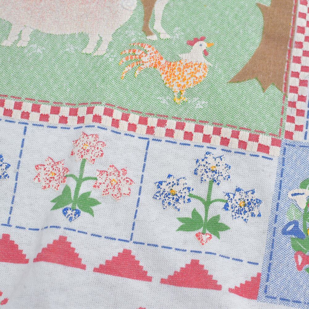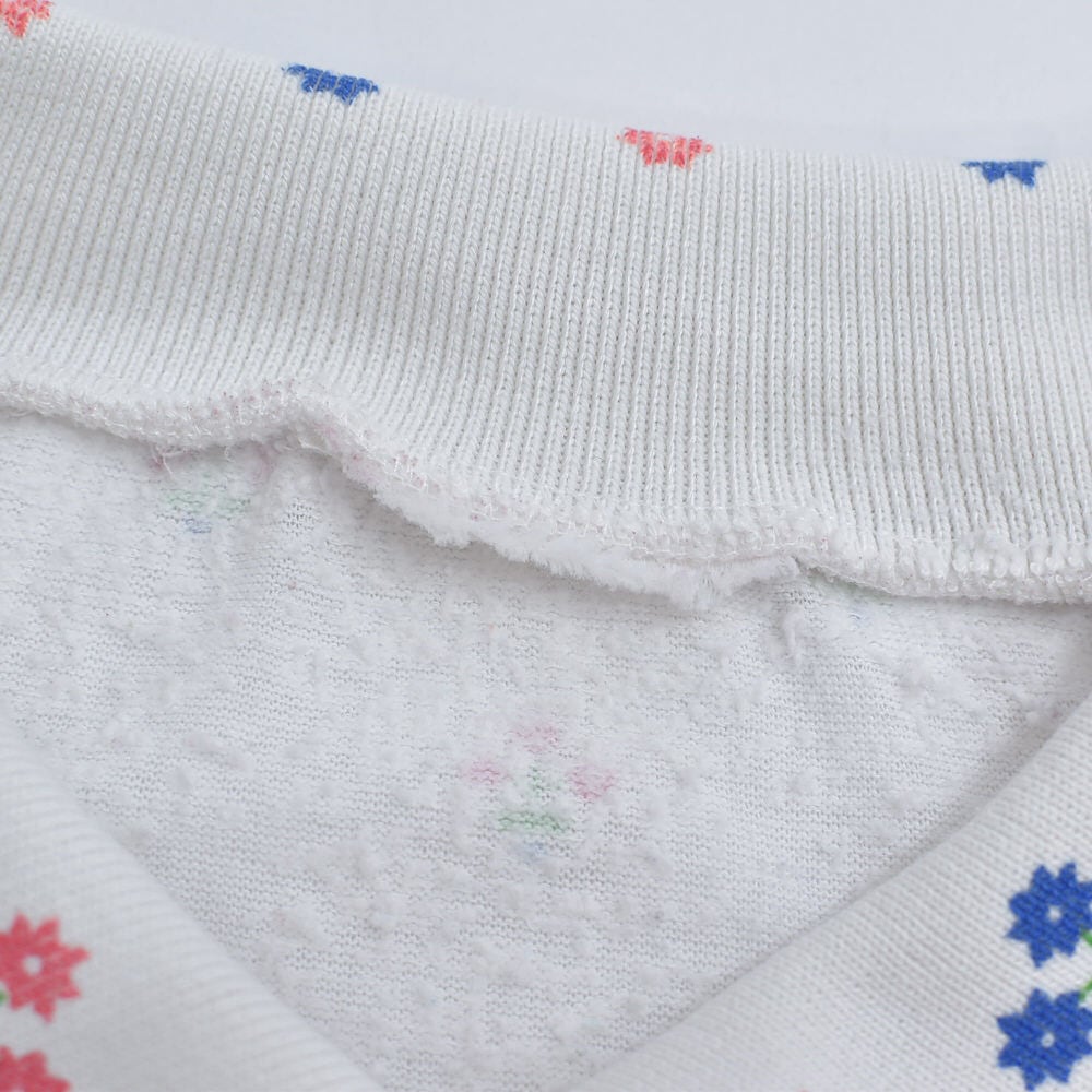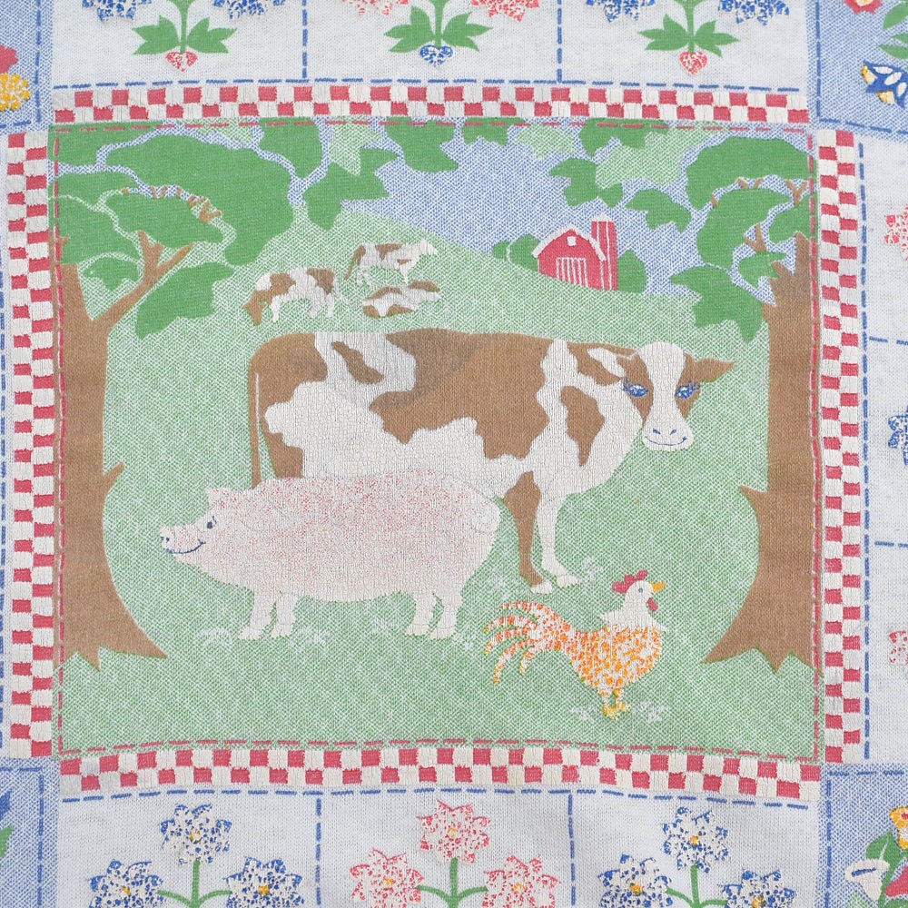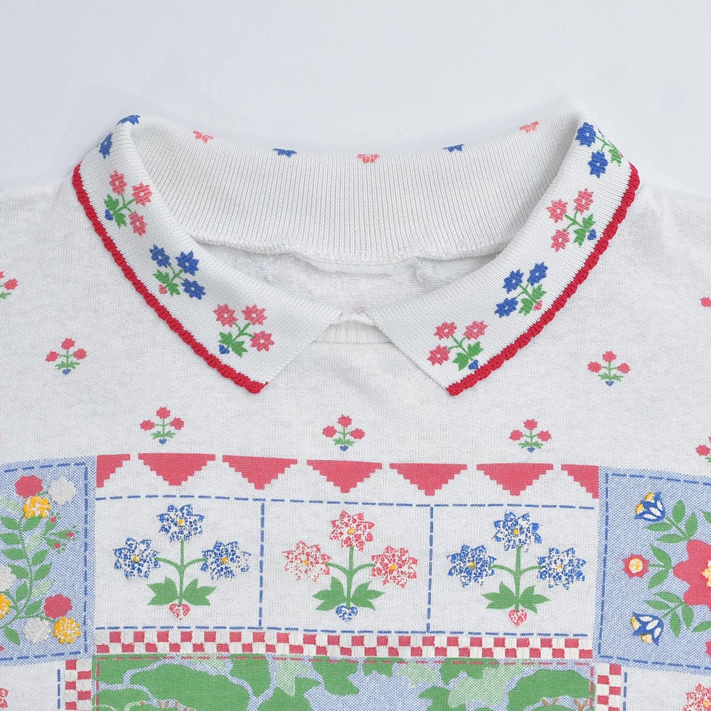 ~90s Used 襟付き アニマルプリント フラワー総柄 デザイン スウェット トレーナー 花柄 動物 カントリー アート ウシさん ヴィンテージ ビンテージ USA アメリカ古着 レディースXL相当