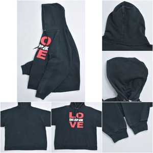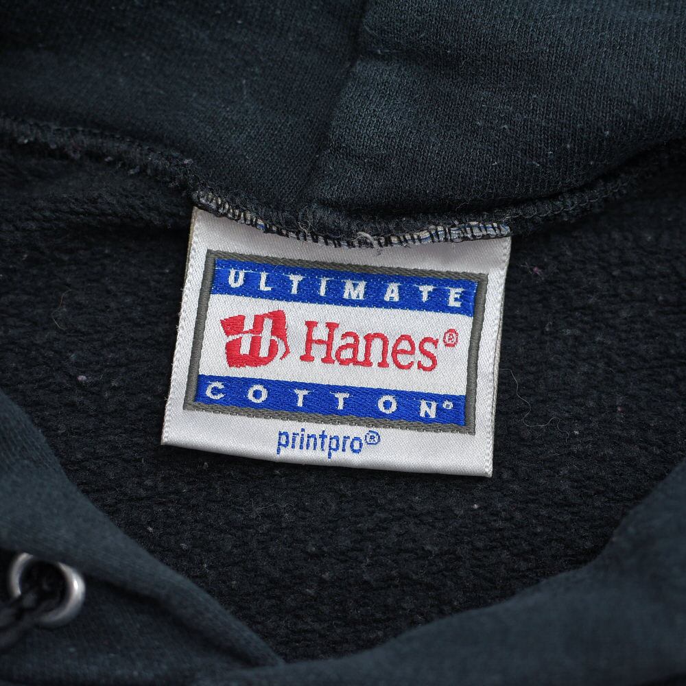 90s Hanes ヘインズ ロゴプリント プルオーバー スウェットパーカー フーディー LOVE DRUNK ブラック ヴィンテージ ビンテージ USA アメリカ古着 メンズ XL〜相当