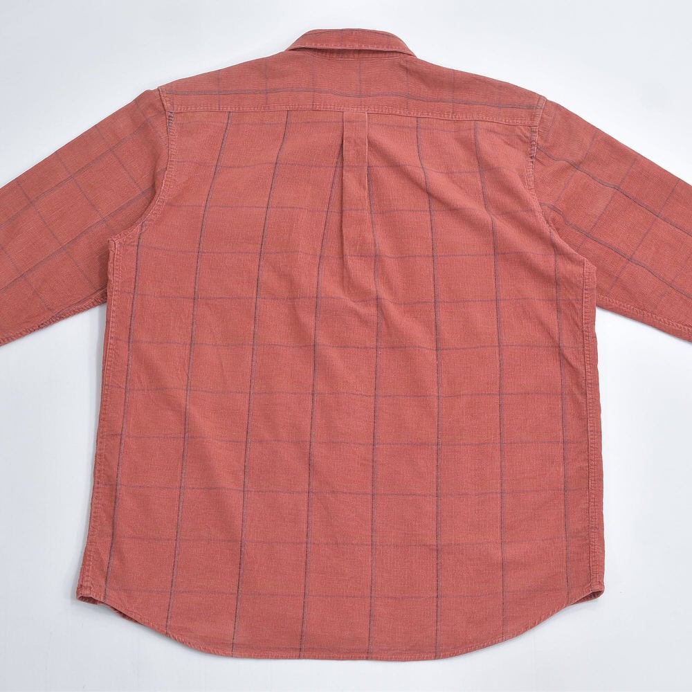 90s~ Vixite ウィンドウペン チェック ダブルフラップ デザイン コーデュロイワークシャツ 長袖 テラコッタ ヴィンテージ ビンテージ ヨーロッパ古着 メンズL相当