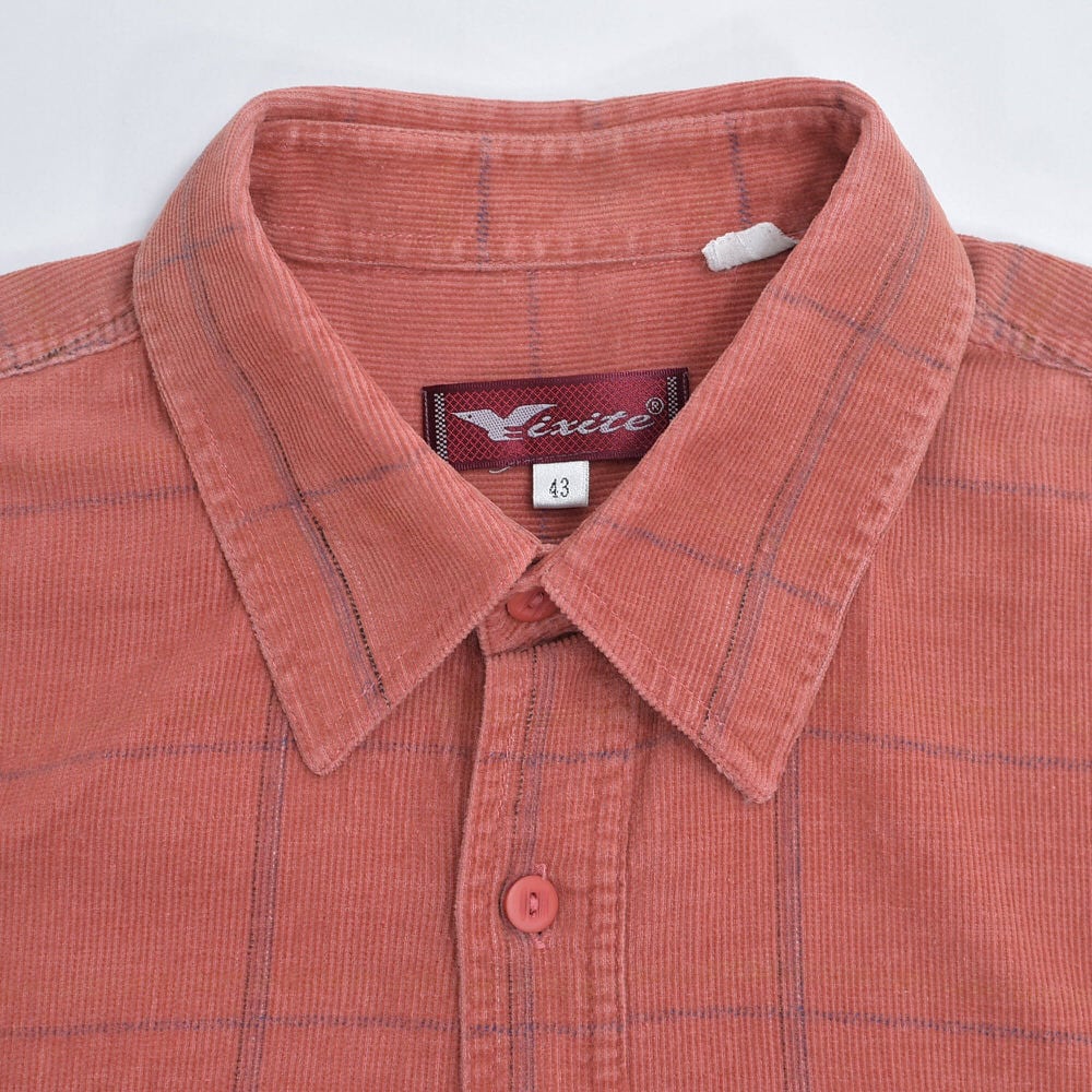 90s〜 Vixite ウィンドウペン チェック ダブルフラップ デザイン コーデュロイワークシャツ 長袖 テラコッタ ヴィンテージ ビンテージ ヨーロッパ古着 メンズL相当