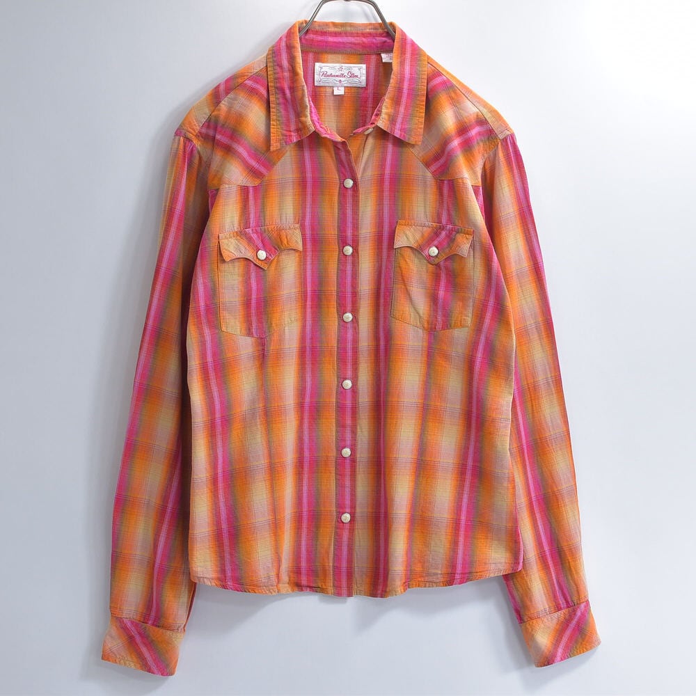90s~ Panhandle Slim パンハンドルスリム オンブレ グラデーション チェック ウエスタンシャツ 長袖シャツ マルチカラー ビンテージ USA アメリカ古着 レディースLサイズ