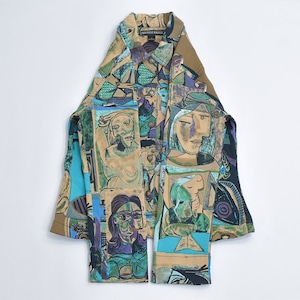 90s~ MIRROR IMAGE キュビズム ピカソ風 アートフル デザイン 総柄 コットン ジャケット コンチョボタン ブルゾン 絵画 ヴィンテージ ビンテージ USA アメリカ古着 レディースSサイズ