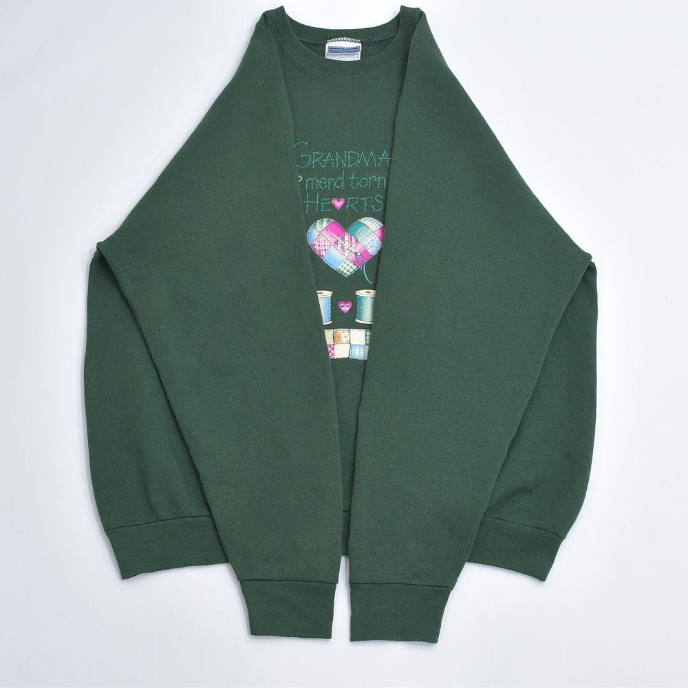 90s〜 FRUIT OF THE LOOM グランマ ハートフル デザイン スウェット トレーナー ヴィンテージ ビンテージ USA アメリカ古着 メンズXLサイズ