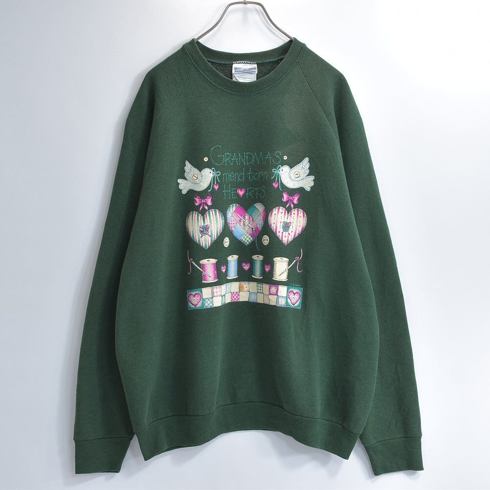 90s~ FRUIT OF THE LOOM グランマ ハートフル デザイン スウェット トレーナー ヴィンテージ ビンテージ USA アメリカ古着 メンズXLサイズ
