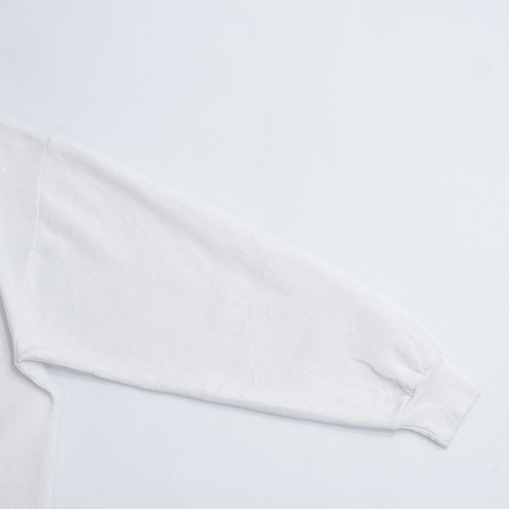 このスウェットが持つ純粋な雰囲気を活かすなら、モノトーンのコーディネートがおすすめ