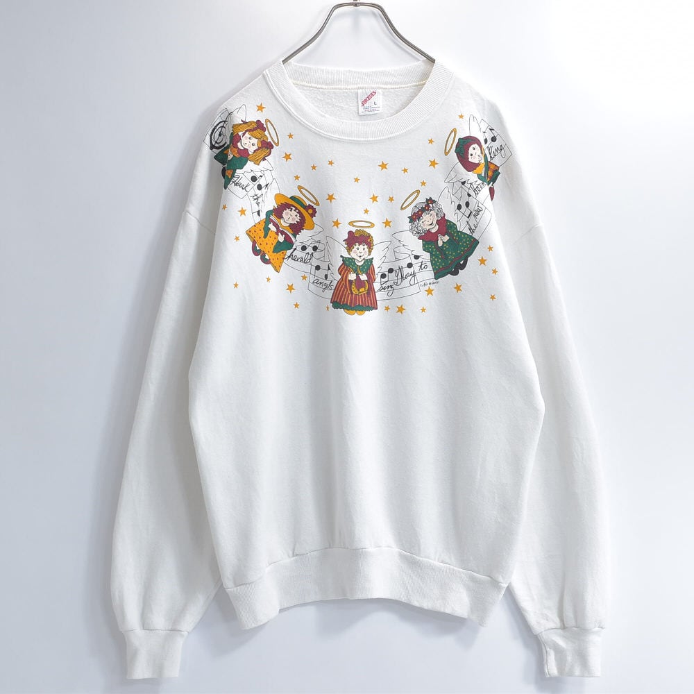 90s USA製 JERZEES ジャージーズ 天使 エンジェル デザイン プリント アート スウェット トレーナー ホワイト ヴィンテージ ビンテージ アメリカ古着 メンズL~サイズ