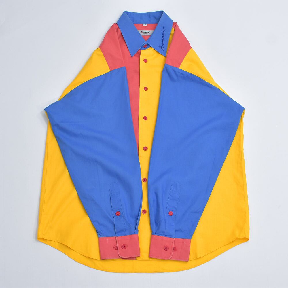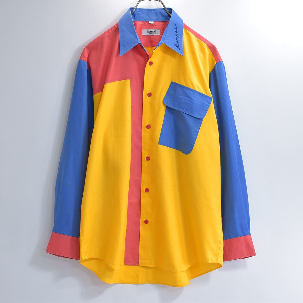 80〜90s kansai uniform カンサイユニフォーム クレイジーパターン シャツ 長袖 ジャパンヴィンテージ 山本寛斎 マルチカラー ビンテージ 古着 メンズMサイズ