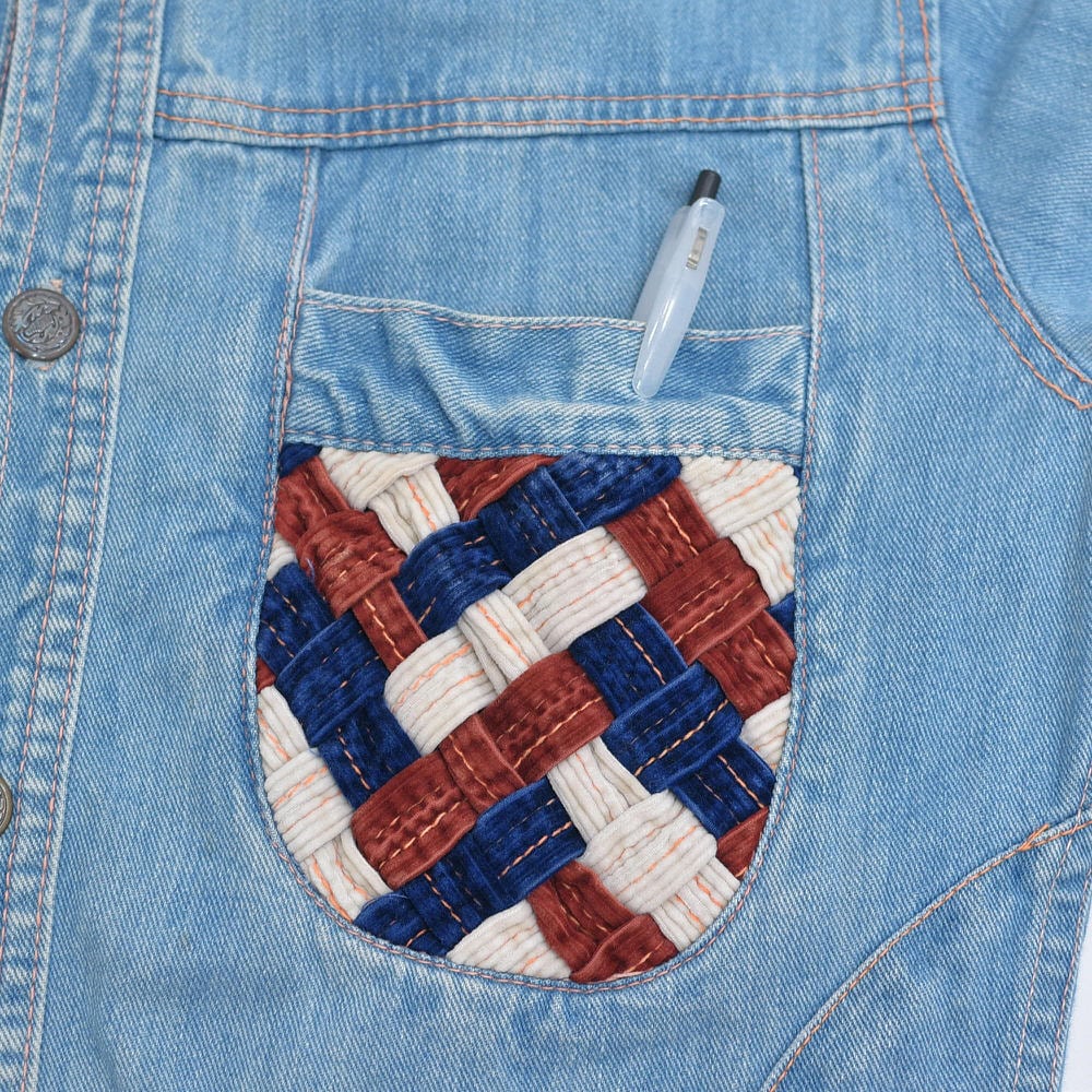 デニムというラフなキャンバスの上で赤、青、白、そして生成りのコーデュロイが温もりある物語を静かに紡ぎ出す
