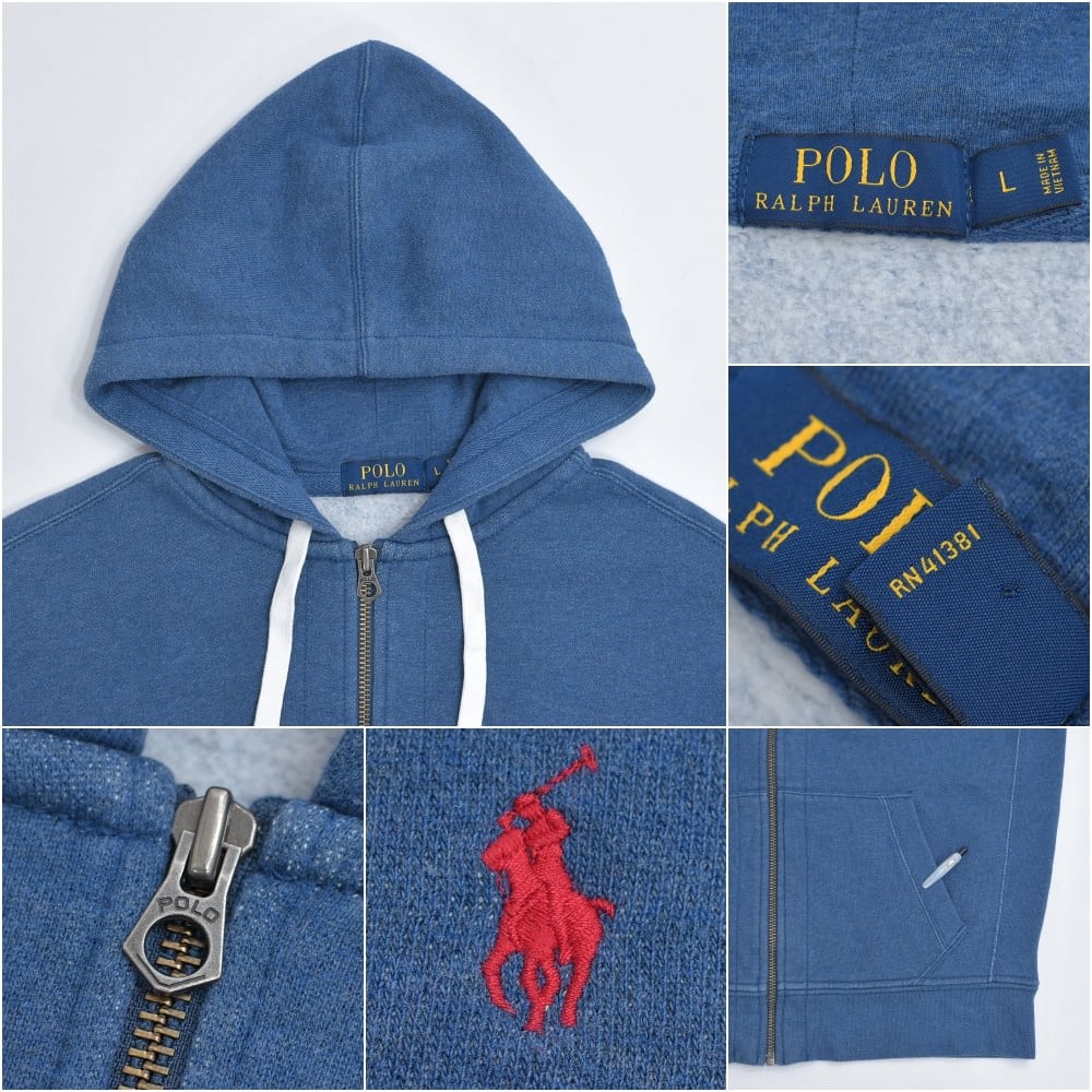 00s Polo Ralph Lauren ポロ ラルフローレン フルジップ ポニーロゴ 刺繍 スウェット パーカー インディゴブルー フーディー ヴィンテージ ビンテージ USA アメリカ古着 メンズLサイズ